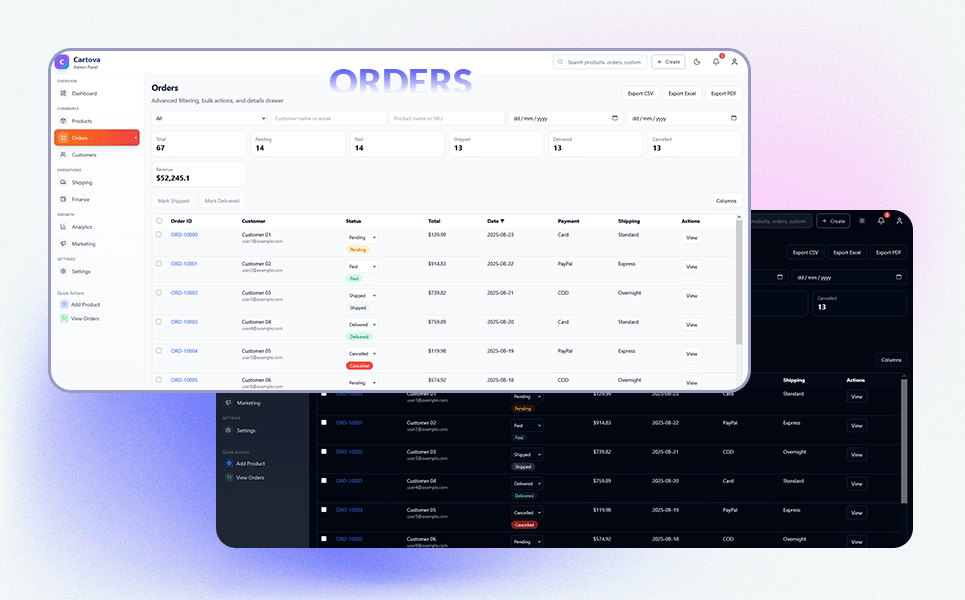 Cartova - React + Vite + Tailwind eCommerce Admin Dashboard Template Admin Template