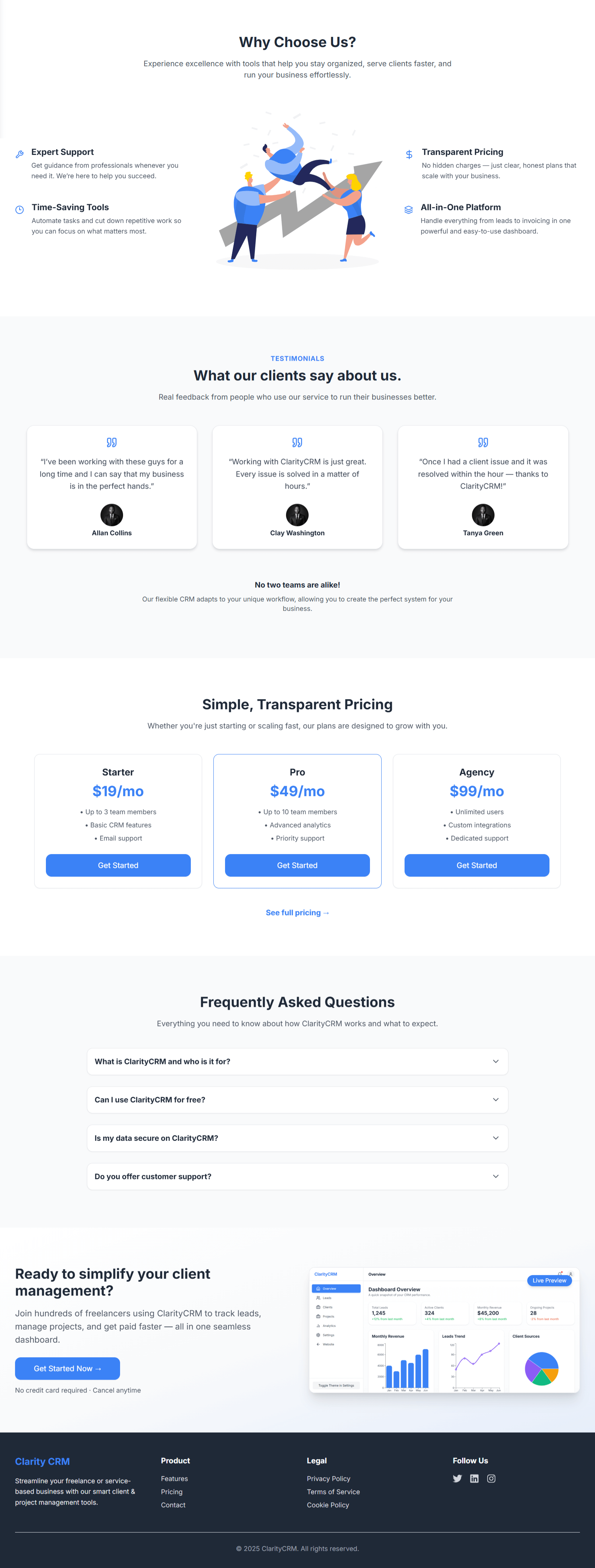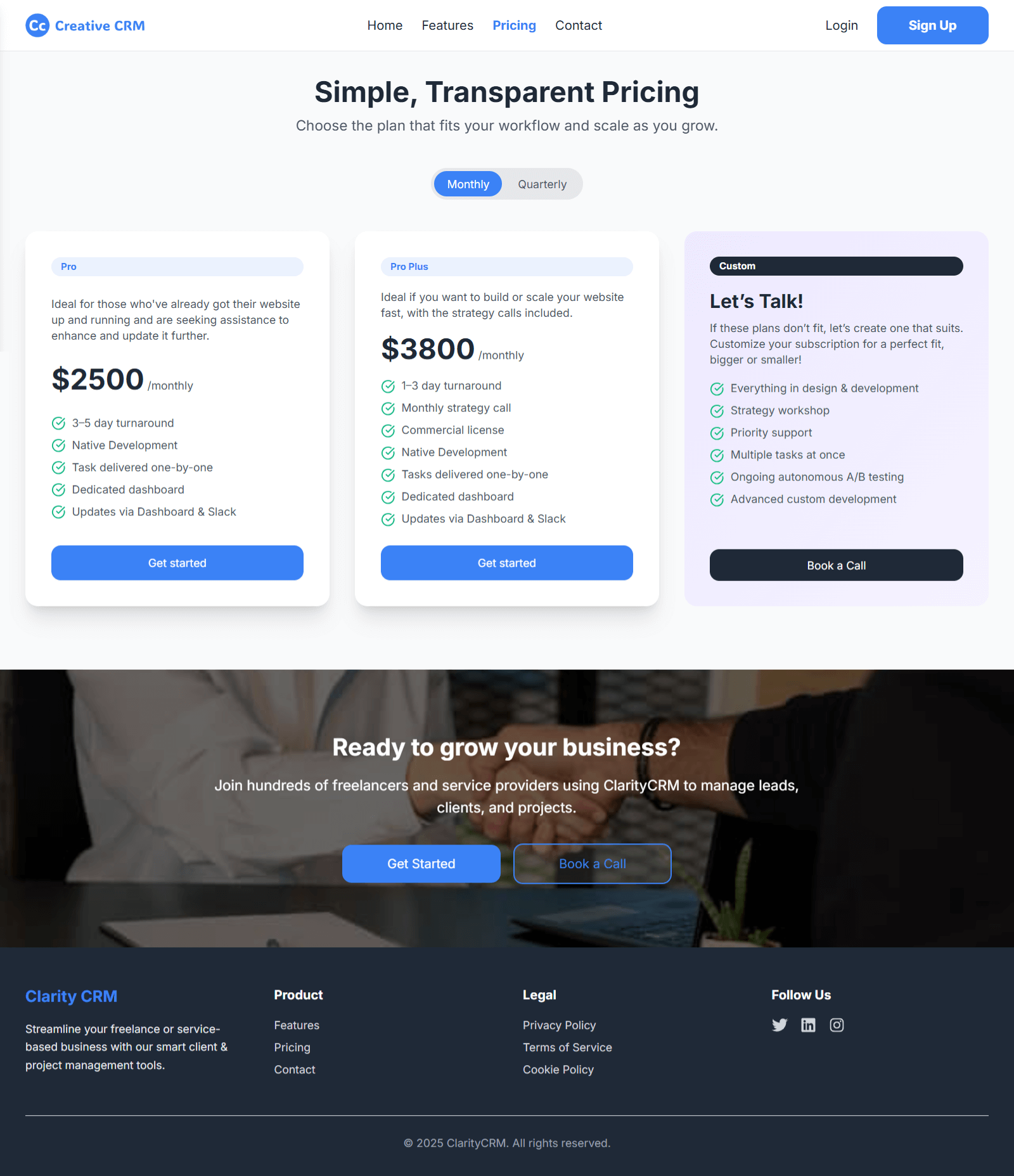 Invest in ClarityCRM to accelerate your project, impress clients, and launch with confidence.