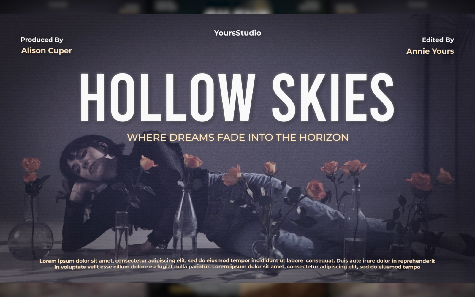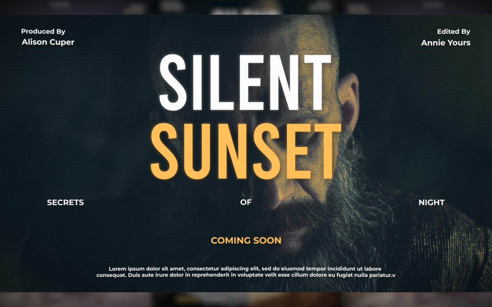 A collection of 6 cinematic title slides with bold, poster–style layouts and a stylish film aesthetic. Perfect for trailers, festival promos, dramatic openers, or creative presentations.
