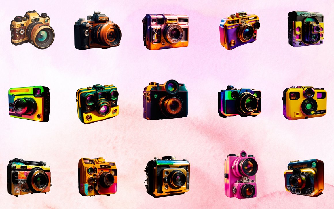 30 Watercolor Vintage Camera Clipart Background
