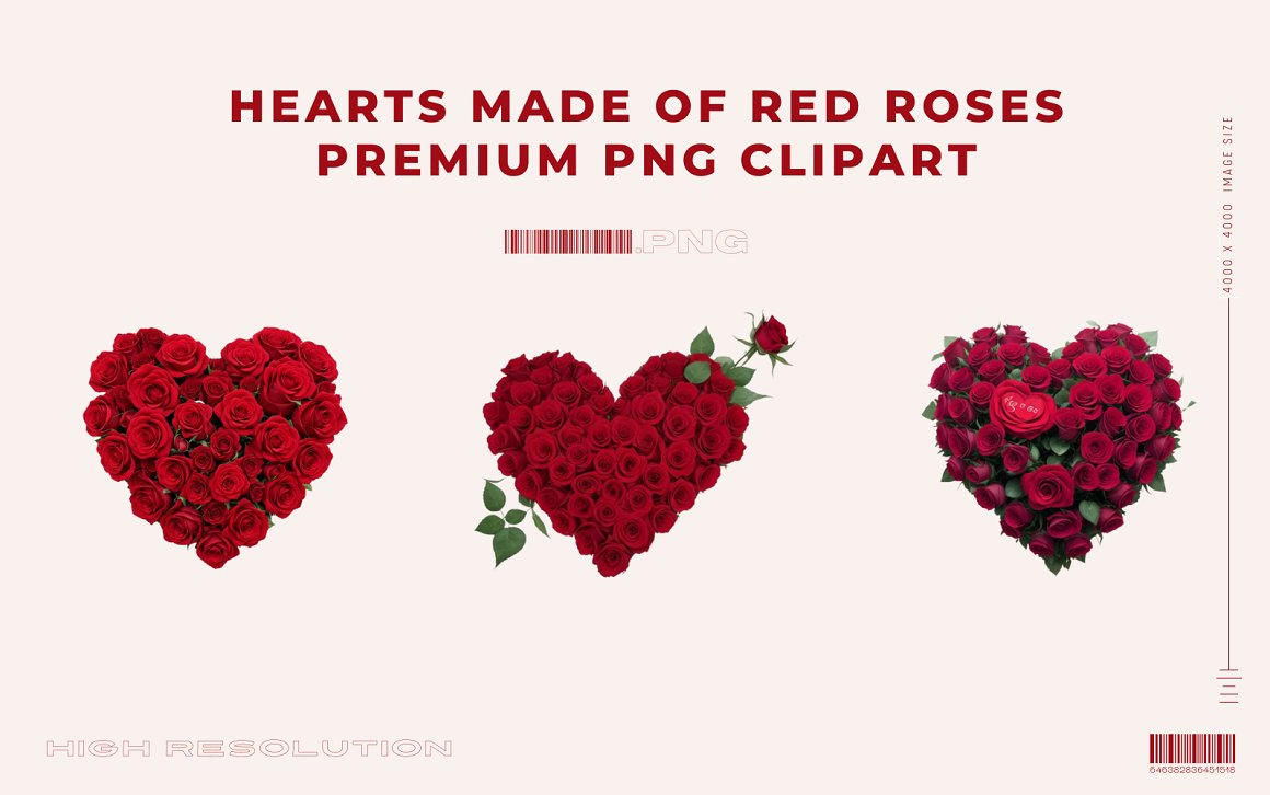 Hearts PNG Clipart Made of Red Roses" is a captivating digital graphic resource featuring beautifully crafted hearts composed entirely of red roses. This clipart provides a unique and romantic touch to your design projects, ideal for expressing love and affection. With a transparent background in PNG format, it seamlessly integrates into various creative endeavors, such as greeting cards, invitations, digital art, or any design that seeks to evoke feelings of love and passion. The vibrant red roses combined in the shape of hearts create a visually stunning and heartfelt element that can add a touch of elegance and emotion to your visual creations.