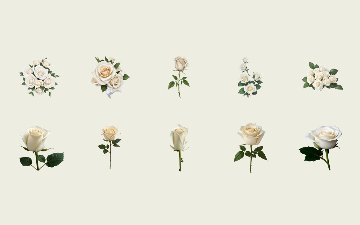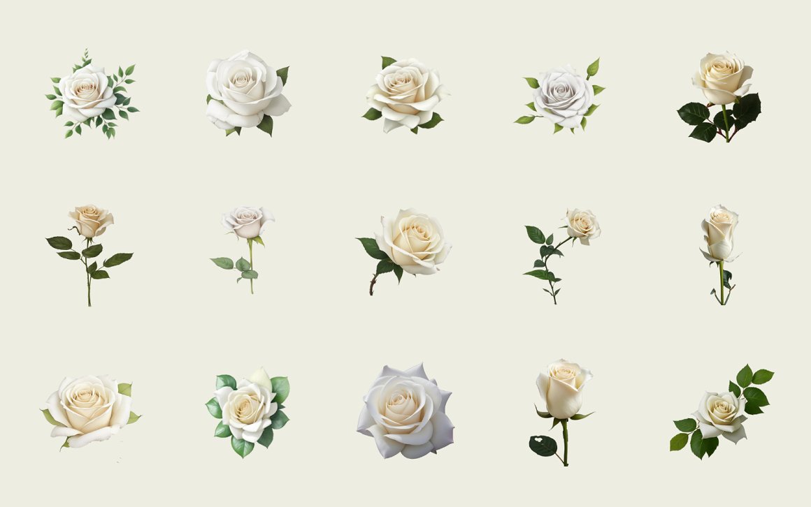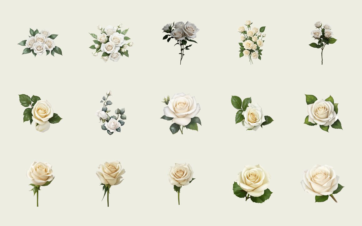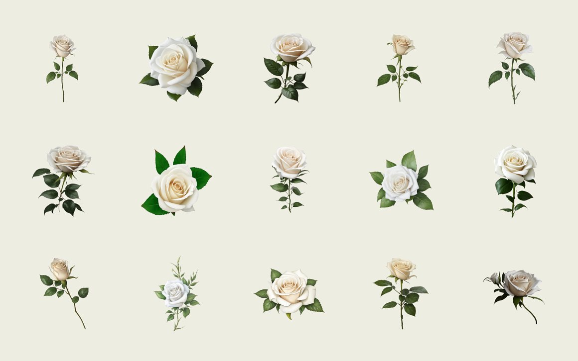The Watercolor White Rose PNG Clipart offers delicate, hand-painted white rose illustrations in a transparent PNG format. These high-quality images showcase the intricate details and soft hues of white roses, perfect for adding a touch of elegance to any project. Ideal for various creative endeavors such as digital art, scrapbooking, invitations, or decorative designs, these transparent clipart images enable easy integration into different backgrounds, allowing the beauty of white roses to stand out in any composition.
