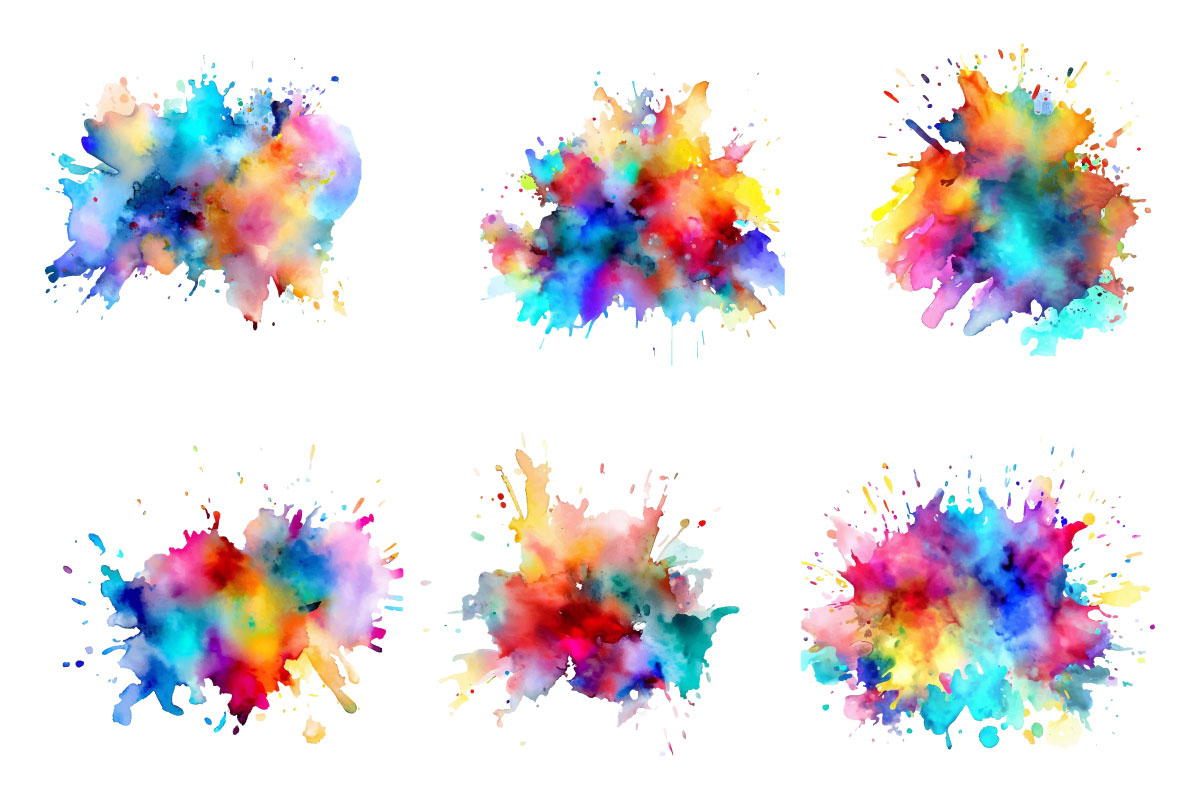 Abstract ink splash background, colorful paint splatter brush stroke – digital paper. Hand painter colors watercolor stain background and Grunge texture. Use them to create beautiful flyer, banner, Printable template, wall art, party invitation card and wallpaper.