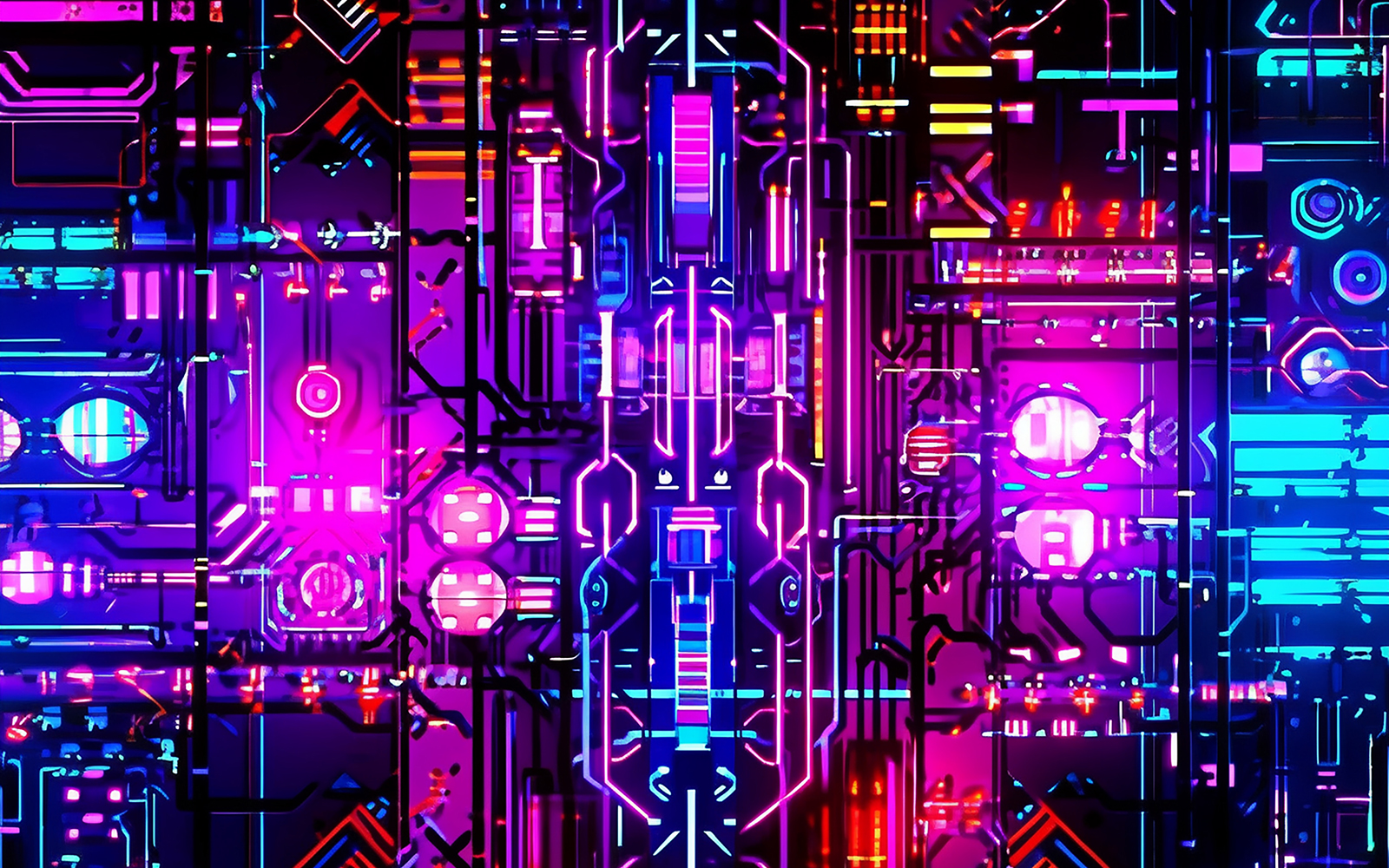 Abstract neon electronic board_neon tech board_neon circuit board Background