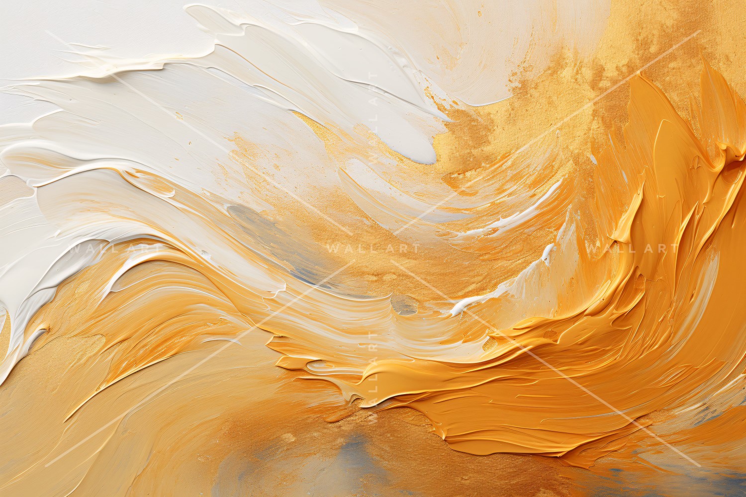 Abstract golden foil wall art merges elegance and modernity, featuring luxurious brush stroke painting style akin to golden foil. This AI-generated masterpiece, reminiscent of oil painting, creates opulent wall art for canvas prints, book covers, curtains, fabric, posters, and website designs. Its richness and texture redefine sophistication in digital artistry.