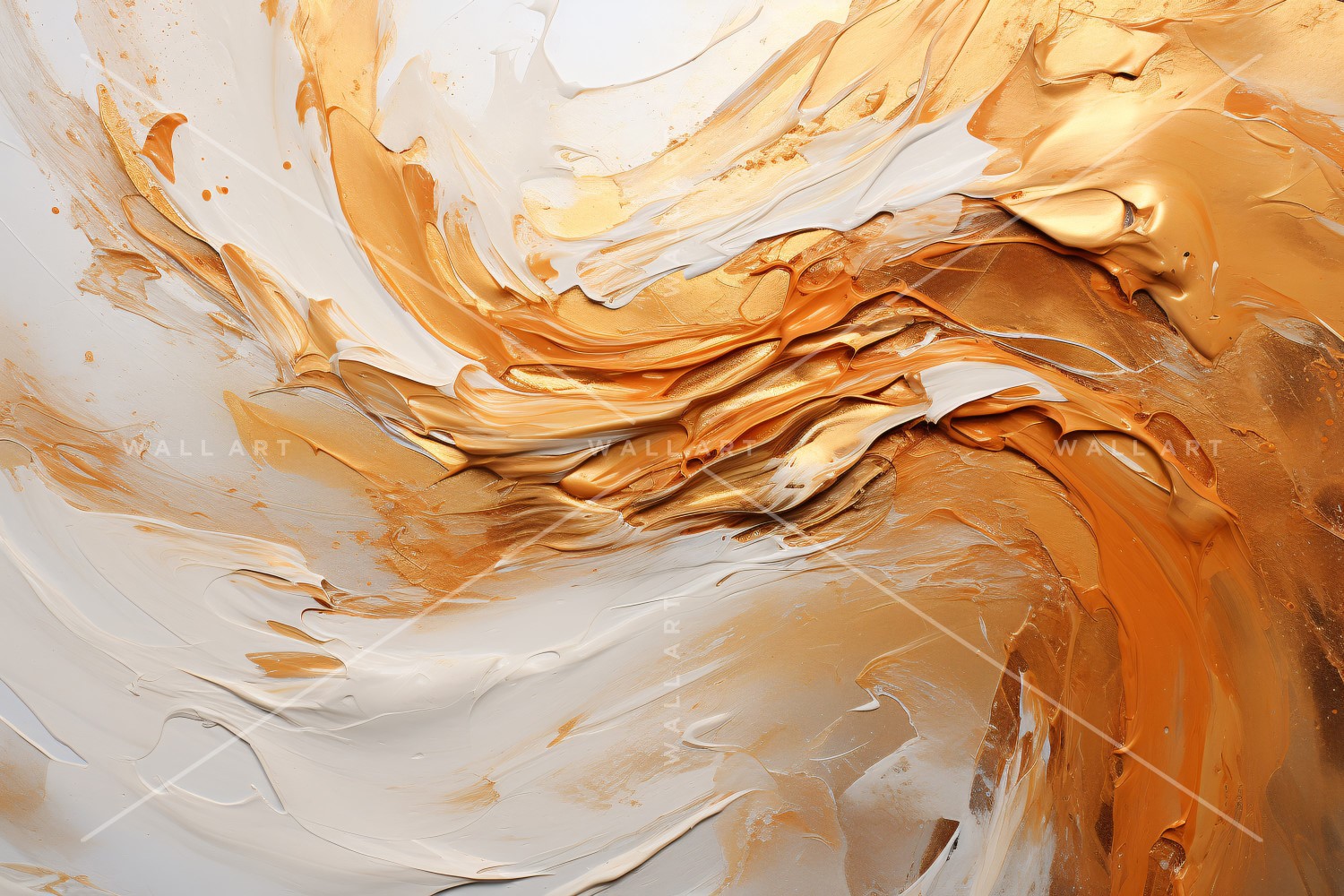 Abstract golden foil wall art merges elegance and modernity, featuring luxurious brush stroke painting style akin to golden foil. This AI-generated masterpiece, reminiscent of oil painting, creates opulent wall art for canvas prints, book covers, curtains, fabric, posters, and website designs. Its richness and texture redefine sophistication in digital artistry.