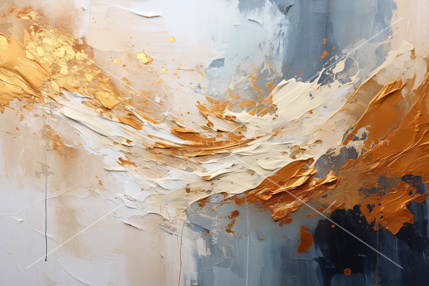 Abstract golden foil wall art merges elegance and modernity, featuring luxurious brush stroke painting style akin to golden foil. This AI-generated masterpiece, reminiscent of oil painting, creates opulent wall art for canvas prints, book covers, curtains, fabric, posters, and website designs. Its richness and texture redefine sophistication in digital artistry.