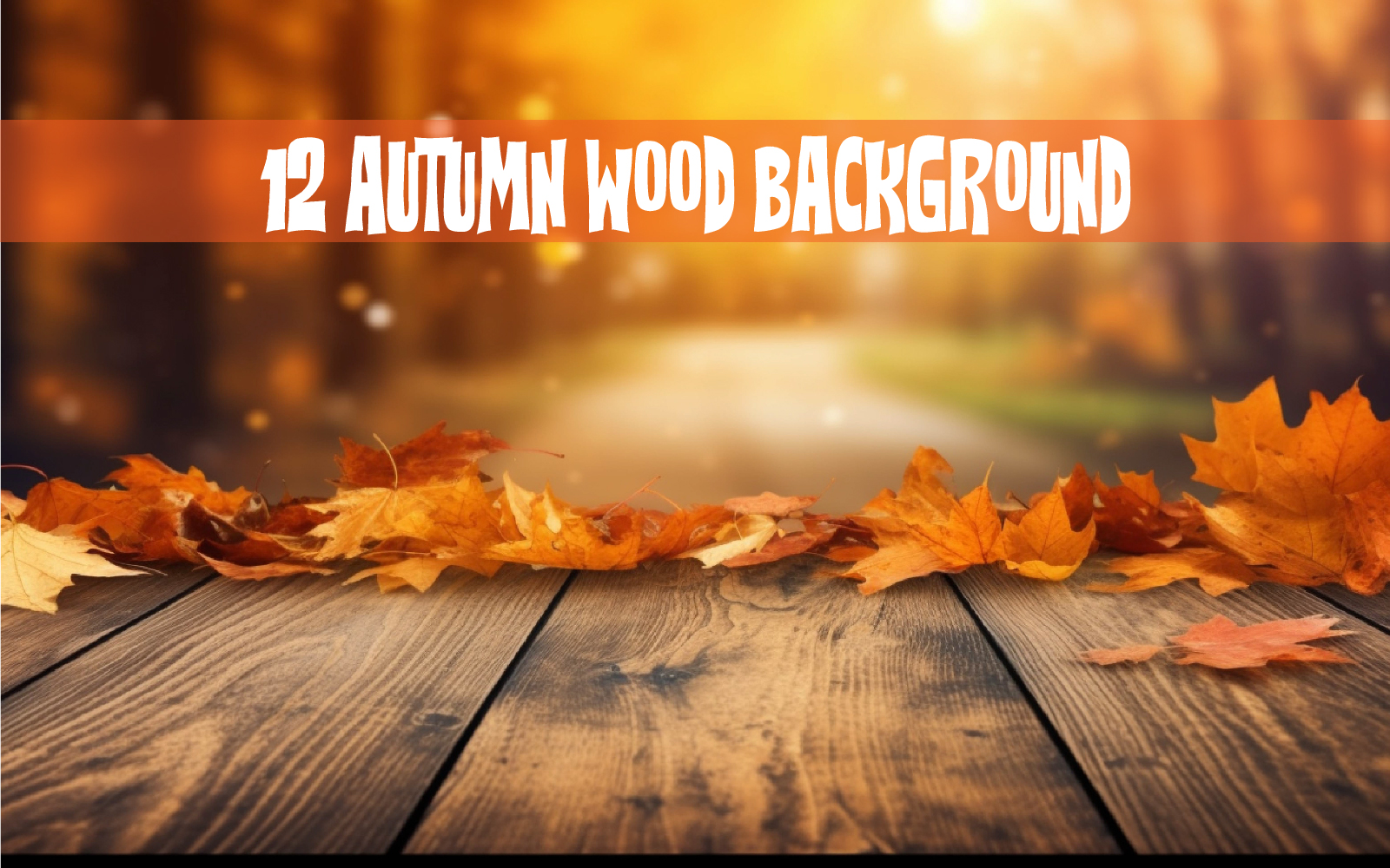 Autumn leaves on a Wooden Background. Made with artificial intelligence. You can use it for print design, T-shirts, Book Cover Design, websites, web banners, social media posts, packaging etc. The file contains 12 background images. The file contains 12 background images with a wooden podium against an autumn backdrop.