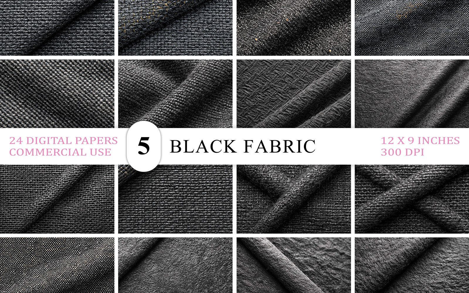✔ 24 Unique Black Fabric Texture Digital Paper Backgrounds
