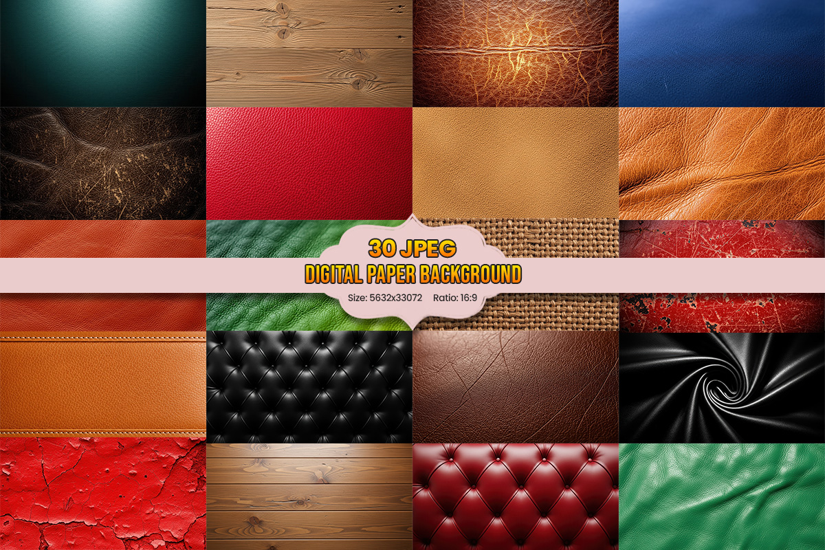 This collection includes a wide range of leather, wood, fabric, grunge, and abstract textures—perfect for graphic design, digital art, scrapbooking, social media, product mockups, and branding projects.