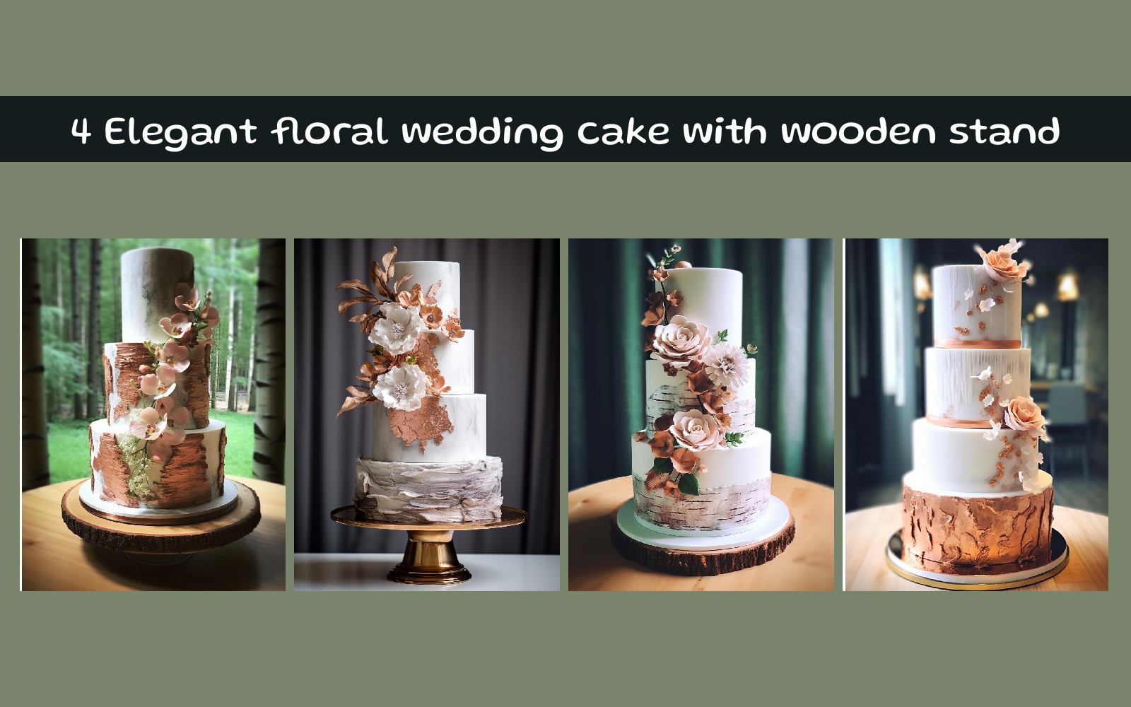 Elegant floral wedding cake with wooden stand. Enjoy the art of baking with our pastry and sweets AI images. Perfect for bakery menus, recipe books, or culinary-themed designs, social media post, banner and etc. it adds a touch of artisanal charm to your creative projects.