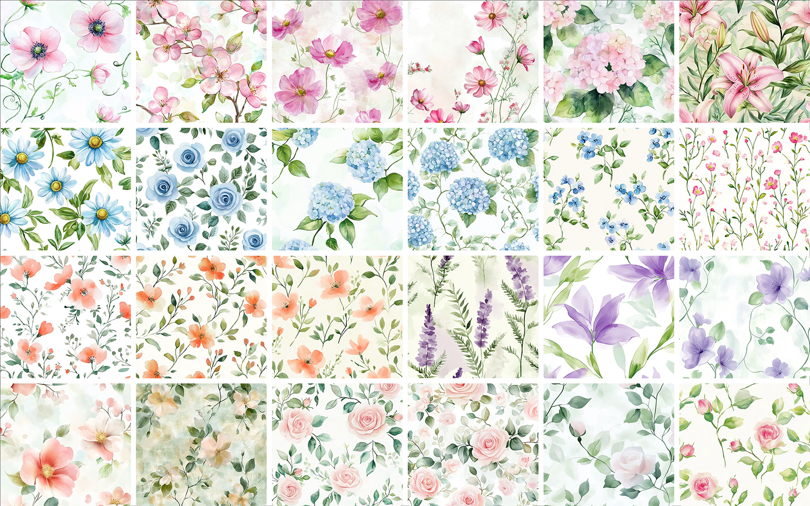 ✔ 72 Unique Seamless Watercolor Floral Digital Paper Backgrounds