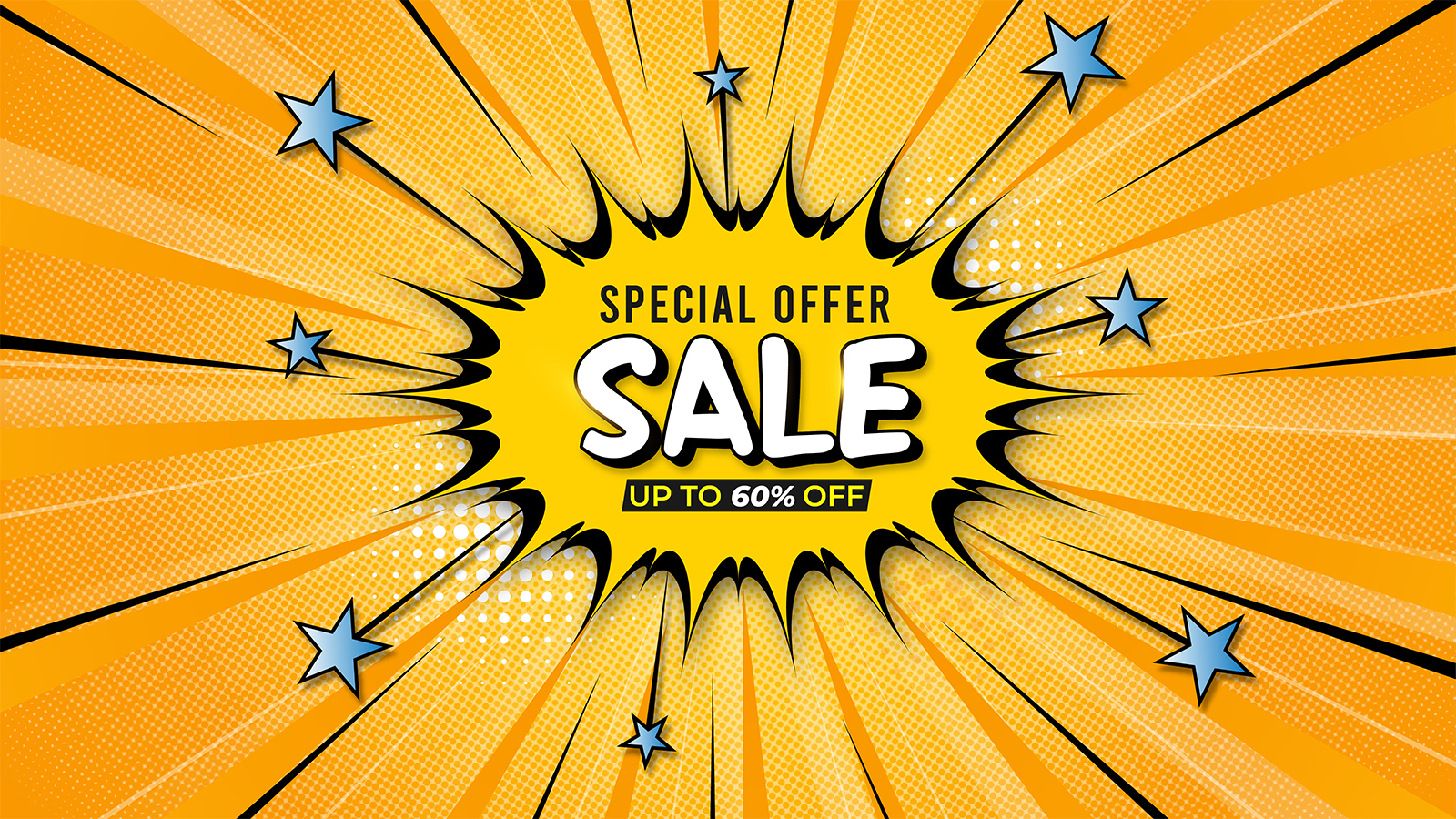 Flat Design Yellow and Blue Comic Style Background Sale With Offer Vector