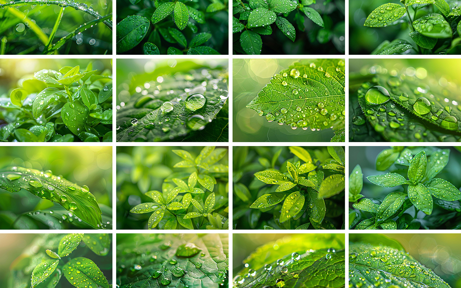 36 Natural Leaf Closeup with Dewdrops Bundle Backgrounds | Premium Quality | Commercial Use Ready
