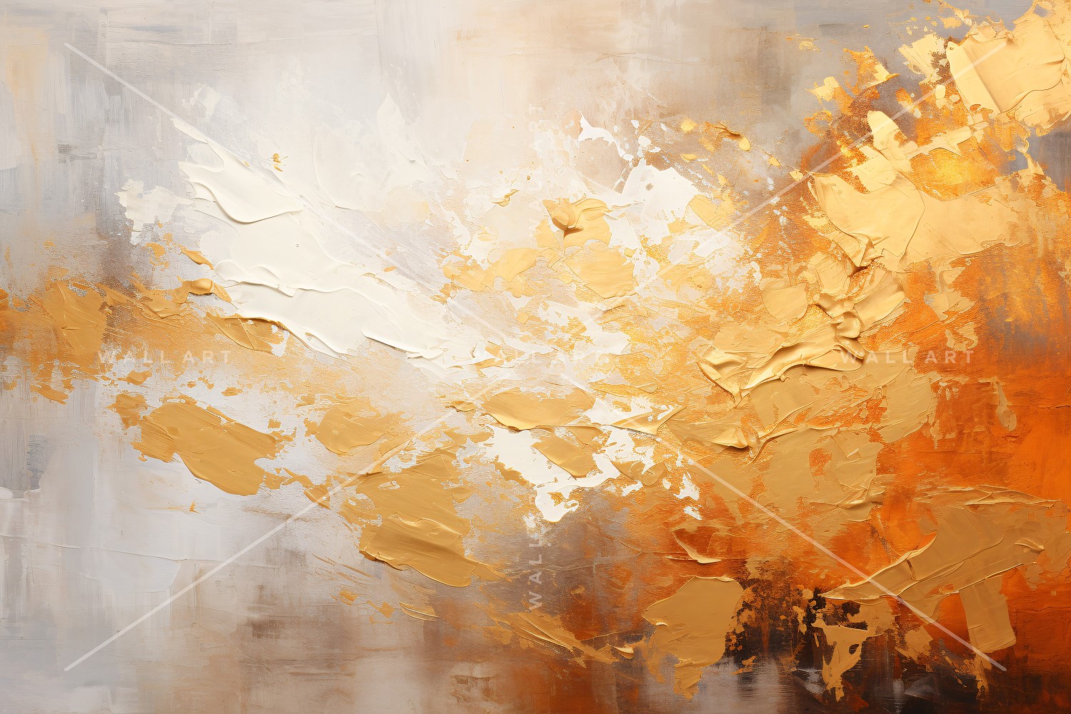 Abstract golden foil wall art merges elegance and modernity, featuring luxurious brush stroke painting style akin to golden foil. This AI-generated masterpiece, reminiscent of oil painting, creates opulent wall art for canvas prints, book covers, curtains, fabric, posters, and website designs. Its richness and texture redefine sophistication in digital artistry.