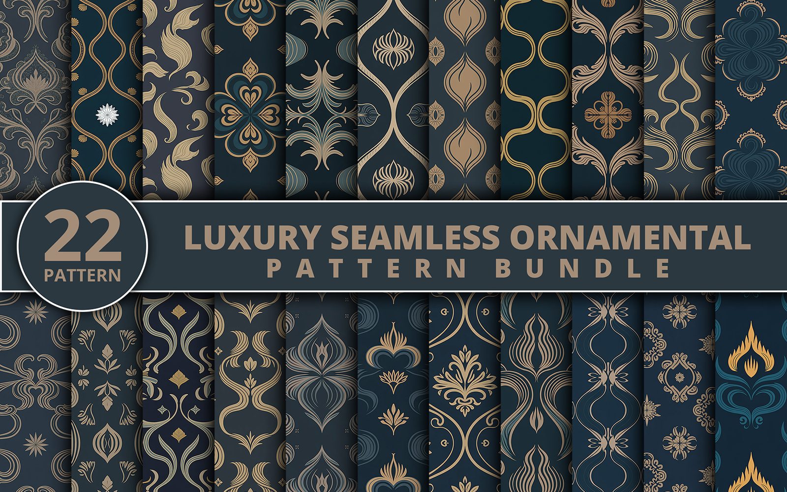 Luxury Ornamental Seamless Pattern Bundle with Elegant Black and Gold Designs Background