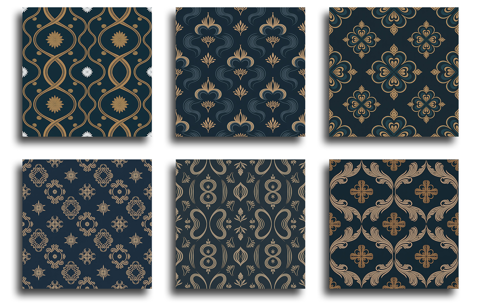 Luxury Ornamental Seamless Pattern Bundle with Elegant Black and Gold Designs for Wallpaper and Textile