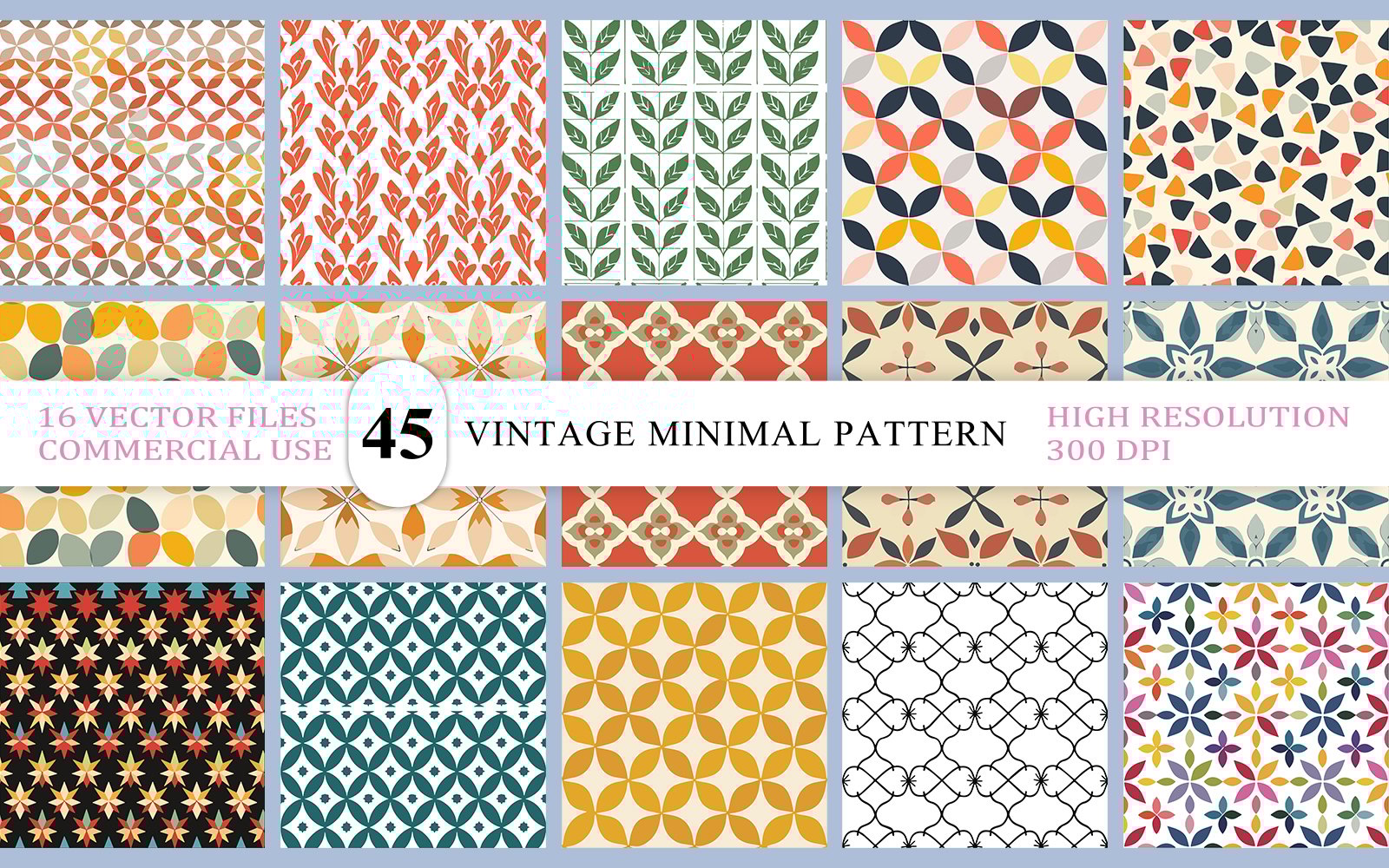 The Retro Leaf & Shape Vector Pattern Collection combines botanical elegance with geometric style, inspired by mid-century modern art. Each pattern is available in RGB (EPS), CMYK (AI), and high-resolution JPG for both digital and print projects. Provided in EPS (RGB), AI (CMYK), and JPG formats, making them perfect for both print and digital projects, The vector formats are fully editable and scalable, allowing easy color customization and resizing without quality loss.