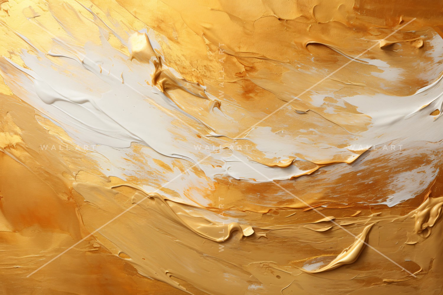 Abstract golden foil wall art merges elegance and modernity, featuring luxurious brush stroke painting style akin to golden foil. This AI-generated masterpiece, reminiscent of oil painting, creates opulent wall art for canvas prints, book covers, curtains, fabric, posters, and website designs. Its richness and texture redefine sophistication in digital artistry.