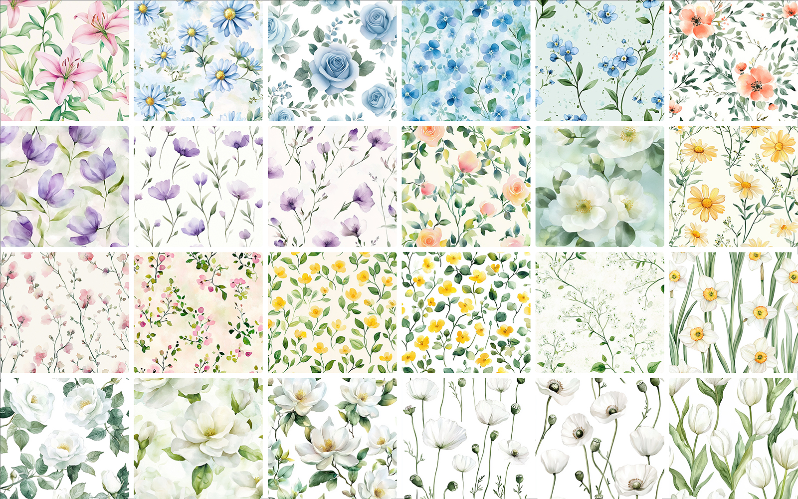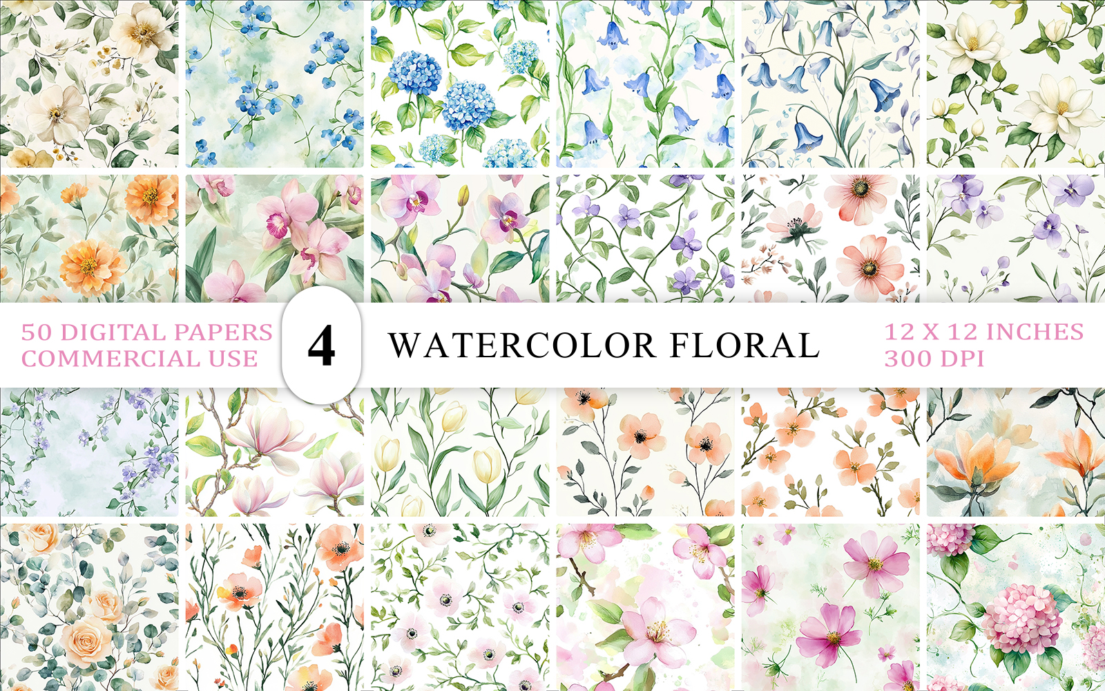 50 Seamless Watercolor Floral Backgrounds Bundle | Premium Quality | Commercial Use Ready