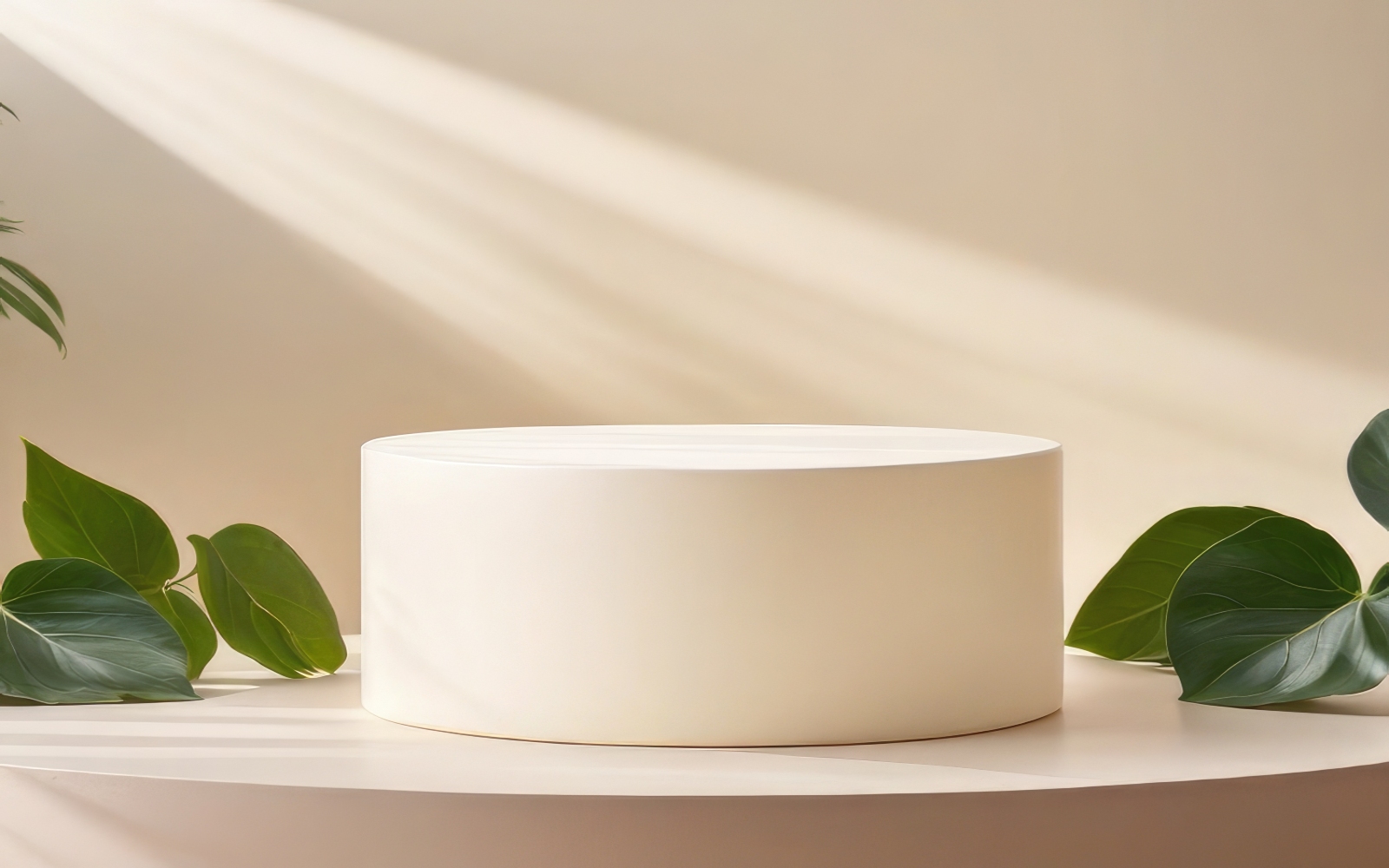 Premium quality Plastic low polished podium delicate cream background. for Product presentation.
