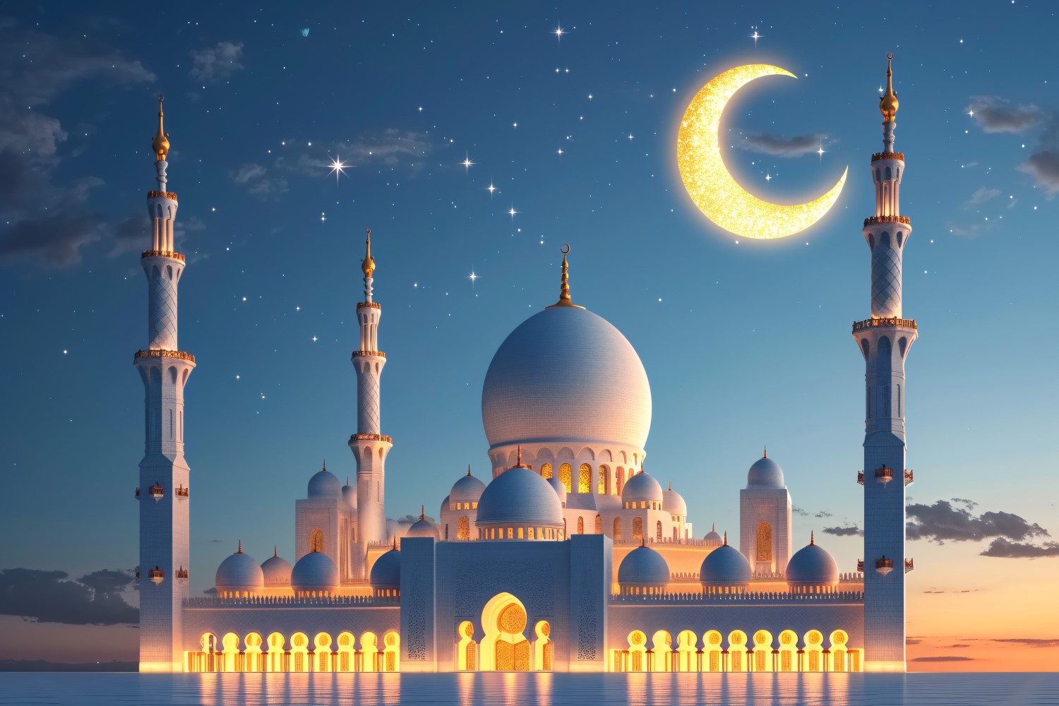Elevate your Ramadan publications with our captivating designs, blending intricate lanterns, soft powder glitter, and celestial pink stars against a serene moonlit backdrop. Capturing the essence of fasting in Islam, our Ramazan Mubarak background serves as a poignant reminder of spiritual devotion and introspection. Whether for book covers, paper printing, or digital art, our designs infuse your creations with the sacred ambiance of Ramadan Kareem.