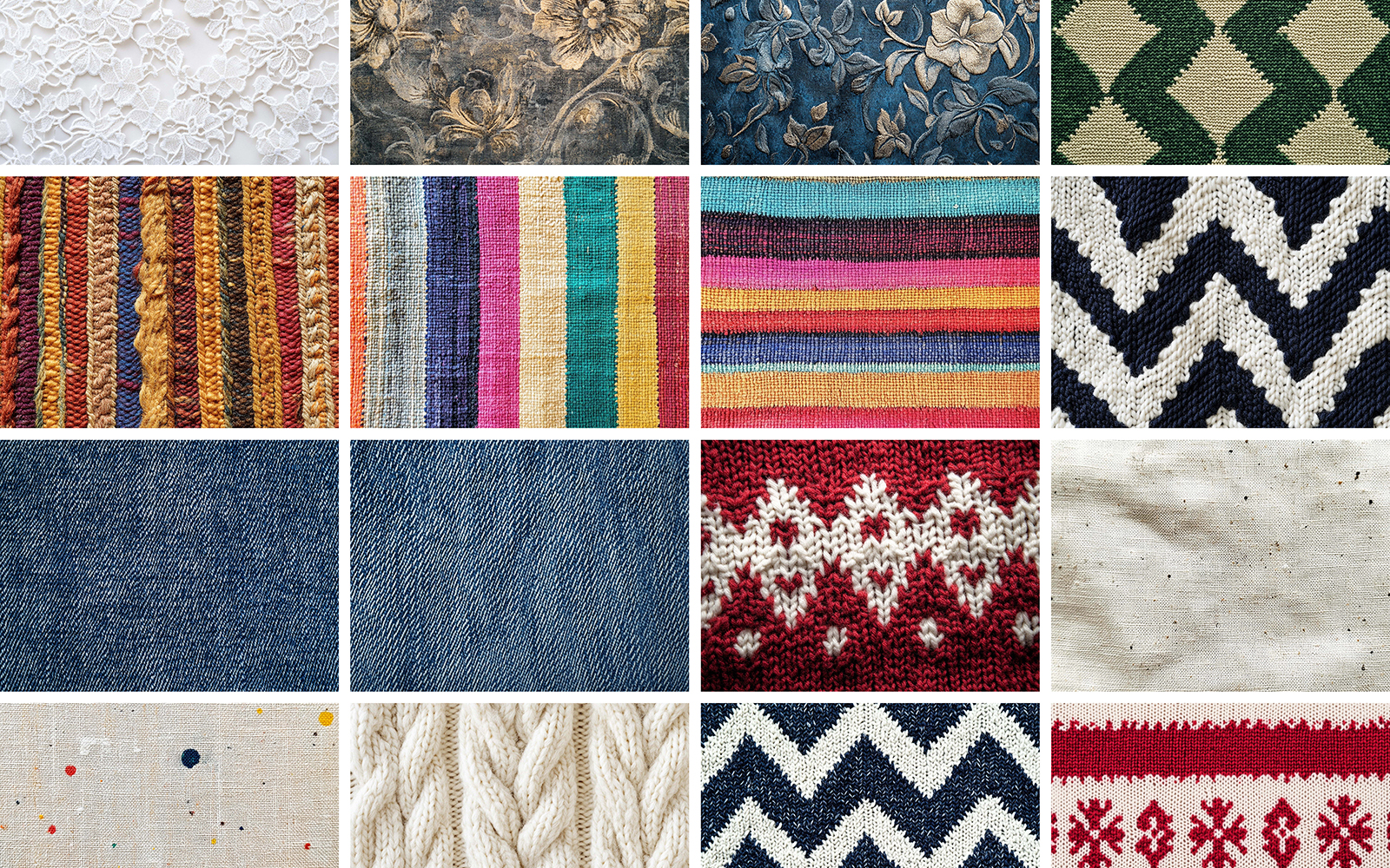 This unique collection features over 36 high-quality fabric textures showcasing the beauty of traditional weaving, cozy knit patterns, lacework, colorful stripes, denim, and hand-dyed prints.
