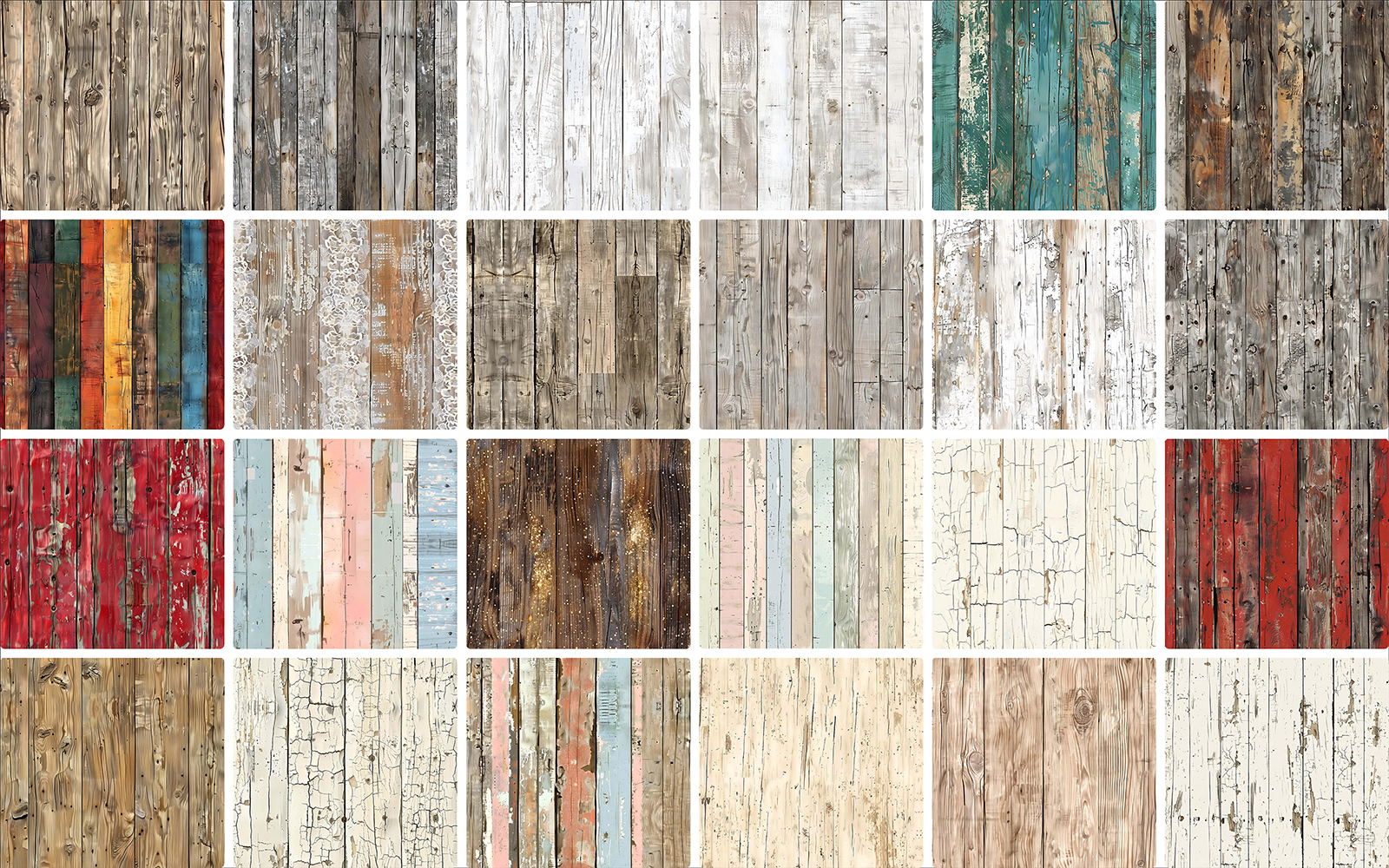 Bring timeless charm and natural warmth to your designs with this beautifully curated Rustic Wood Background Bundle. Featuring 32 high-resolution JPG textures, each background showcases weathered planks, distressed paint, chipped edges, and aged wood grains — perfect for giving your projects a cozy, farmhouse-inspired touch.