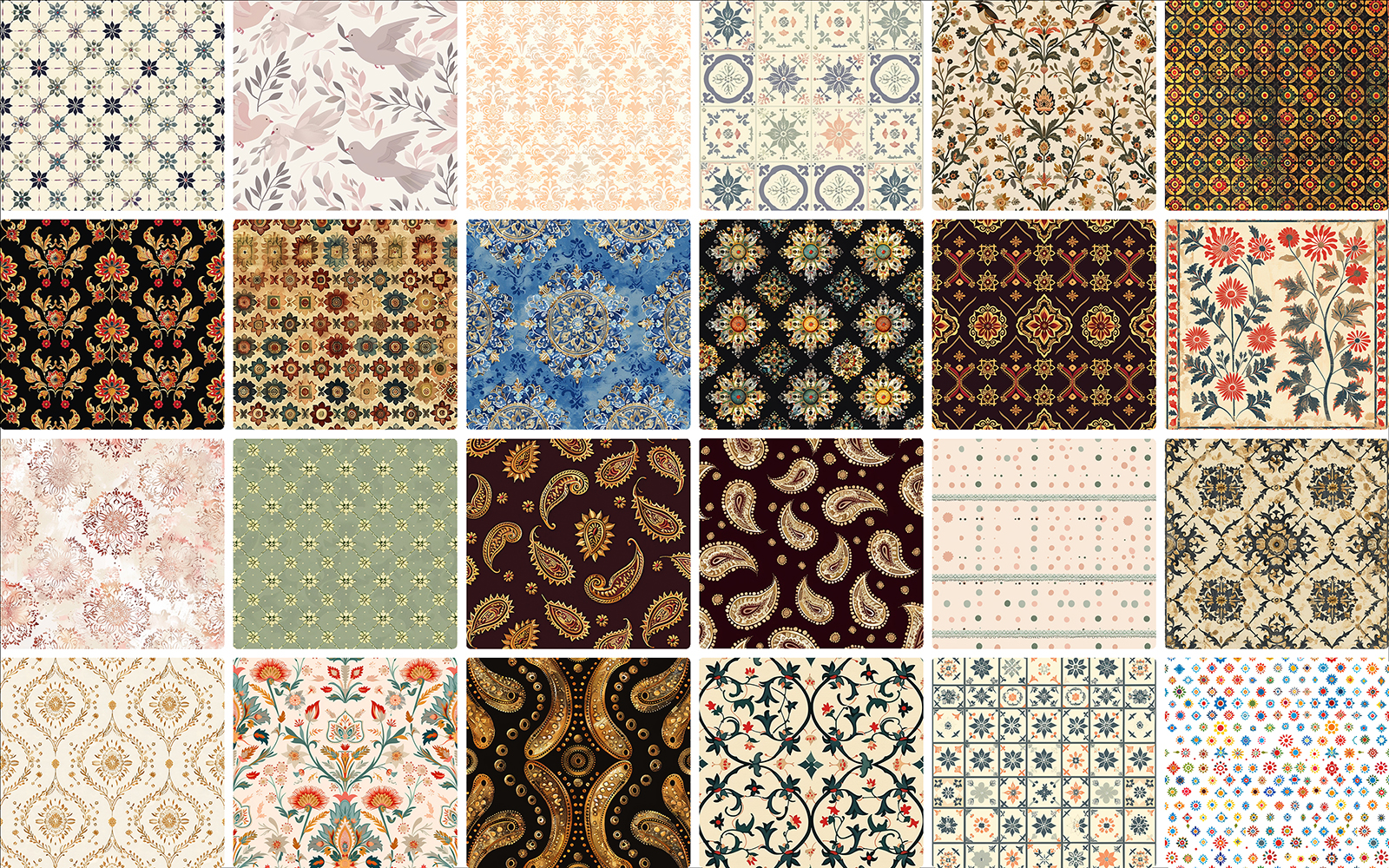 Elevate your creative projects with this richly curated Vintage Floral Seamless Pattern Texture Bundle. This collection includes 48 high-resolution JPG backgrounds featuring a luxurious mix of vintage damask, intricate mandalas, floral motifs, paisley elements, and ethnic tile-inspired patterns. Each design brings a bold yet elegant charm, blending vibrant colors with timeless ornamental aesthetics.