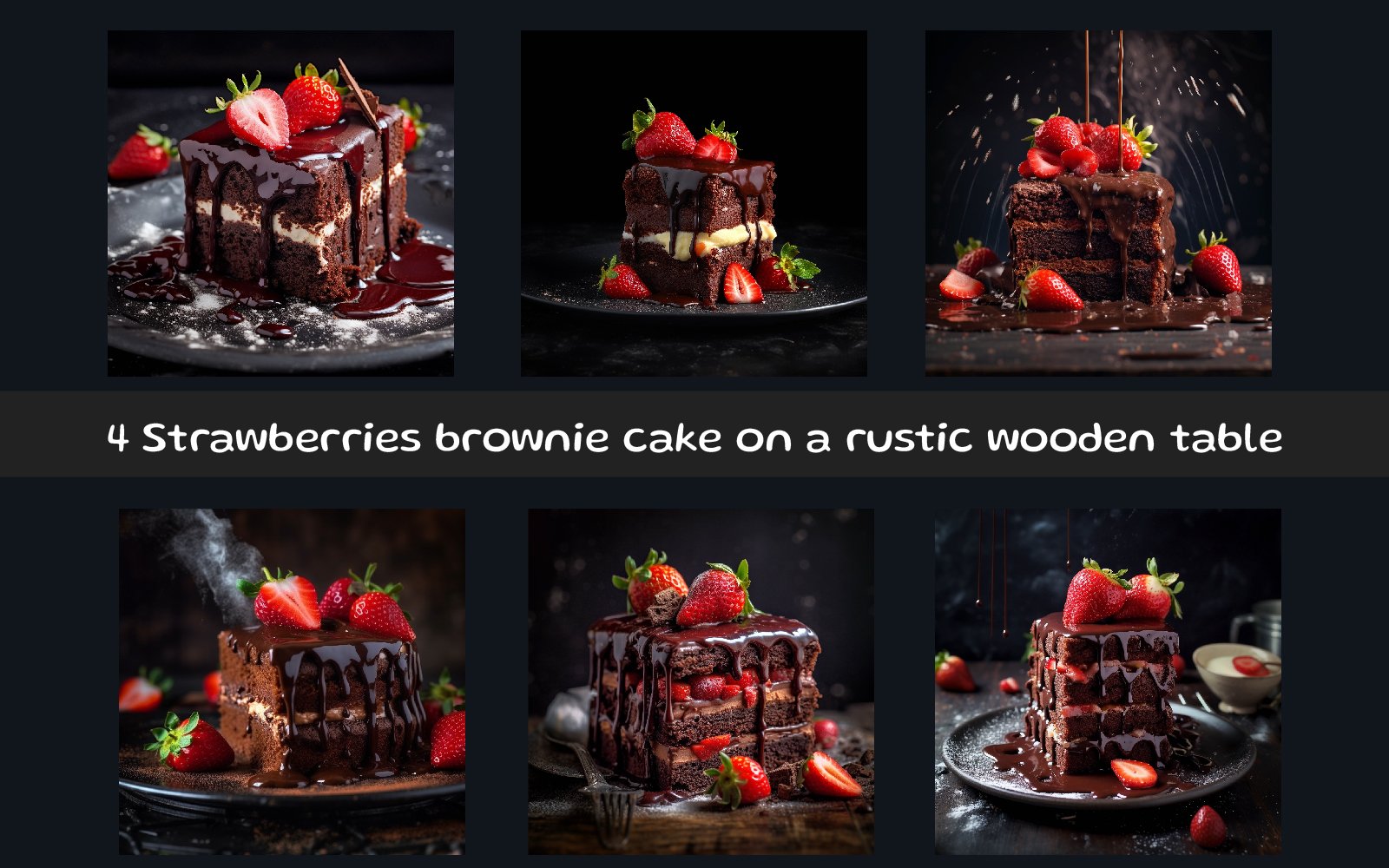 Strawberries brownie cake on a rustic wooden table. Enjoy the art of baking with our pastry and sweets AI images. Perfect for bakery menus, recipe books, or culinary-themed designs, social media post, banner and etc. it adds a touch of artisanal charm to your creative projects.