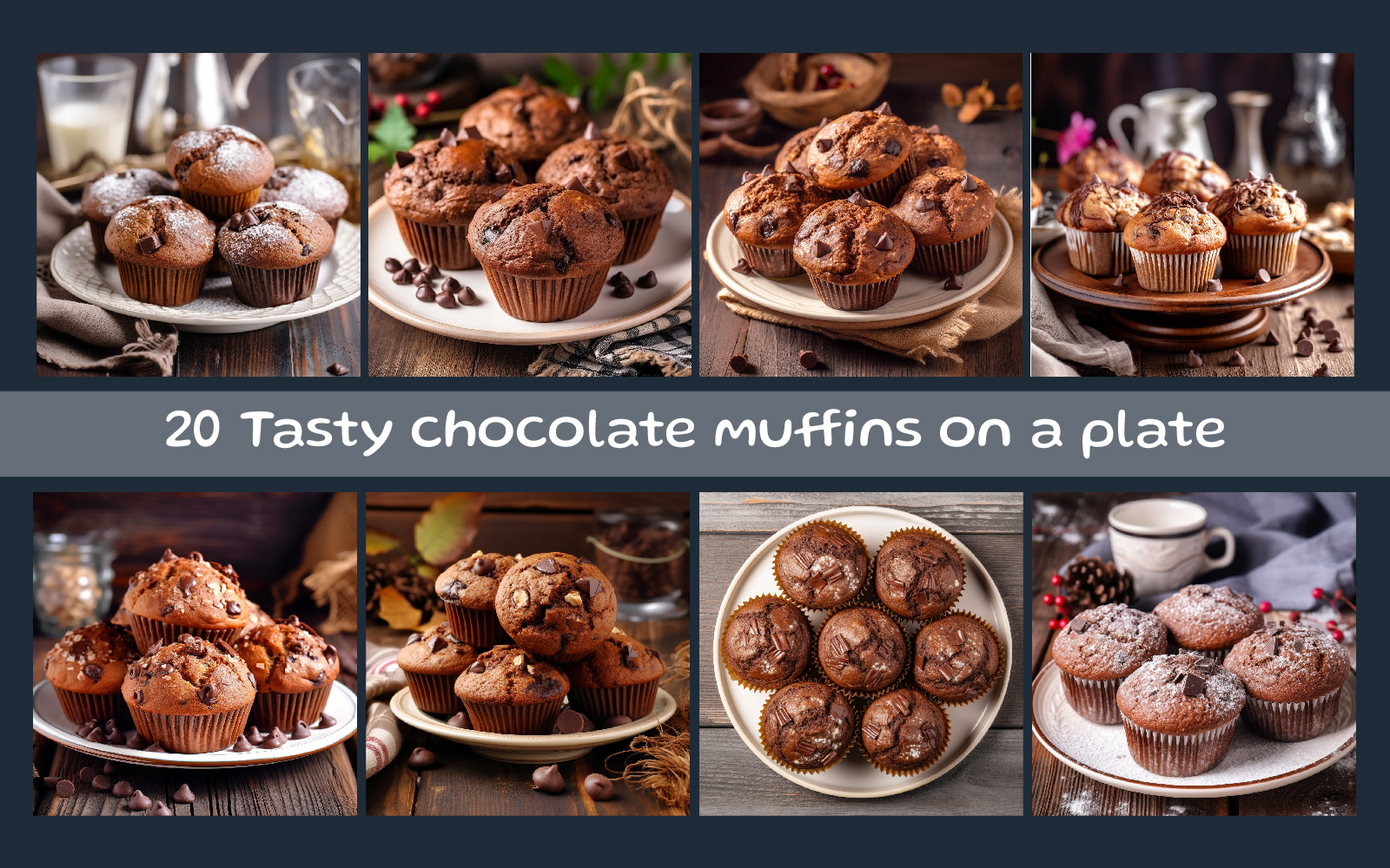 Tasty chocolate muffins on a plate. Enjoy the art of baking with our pastry and sweets AI images. This delightful artwork captures the essence of this classic pastry, showcasing its golden crust and soft, fluffy texture. Perfect for bakery menus, recipe books, or culinary-themed designs, social media post, banner and etc. it adds a touch of artisanal charm to your creative projects.