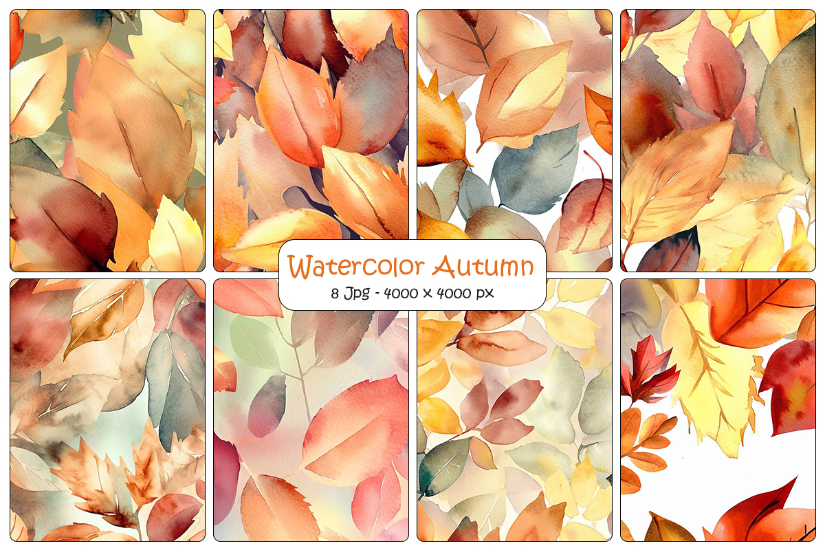 The watercolor autumn leaves background takes the digital paper a step further by incorporating additional elements such as trees, branches, and other foliage. These elements are expertly blended into the design using various techniques, resulting in a stunning and cohesive composition. The colors are rich and vibrant, creating a warm and inviting atmosphere that embodies the spirit of fall.