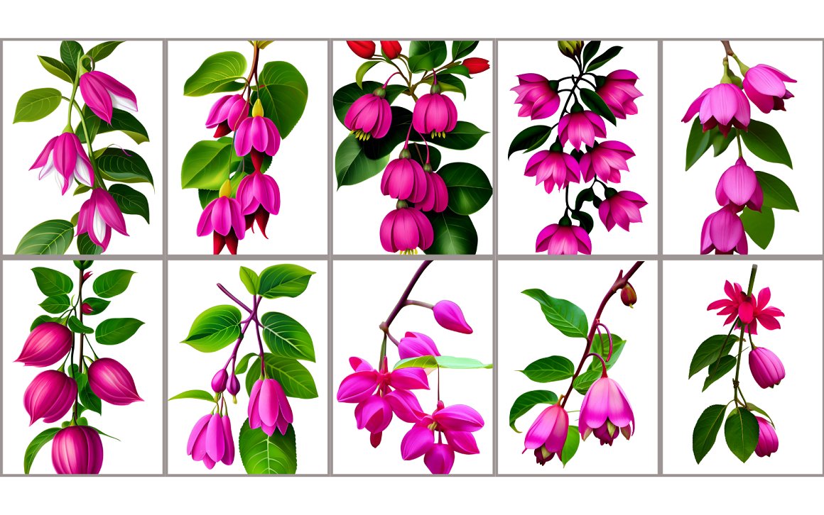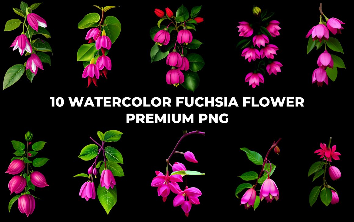 - 10 Watercolor Fuchsia Flower PNG