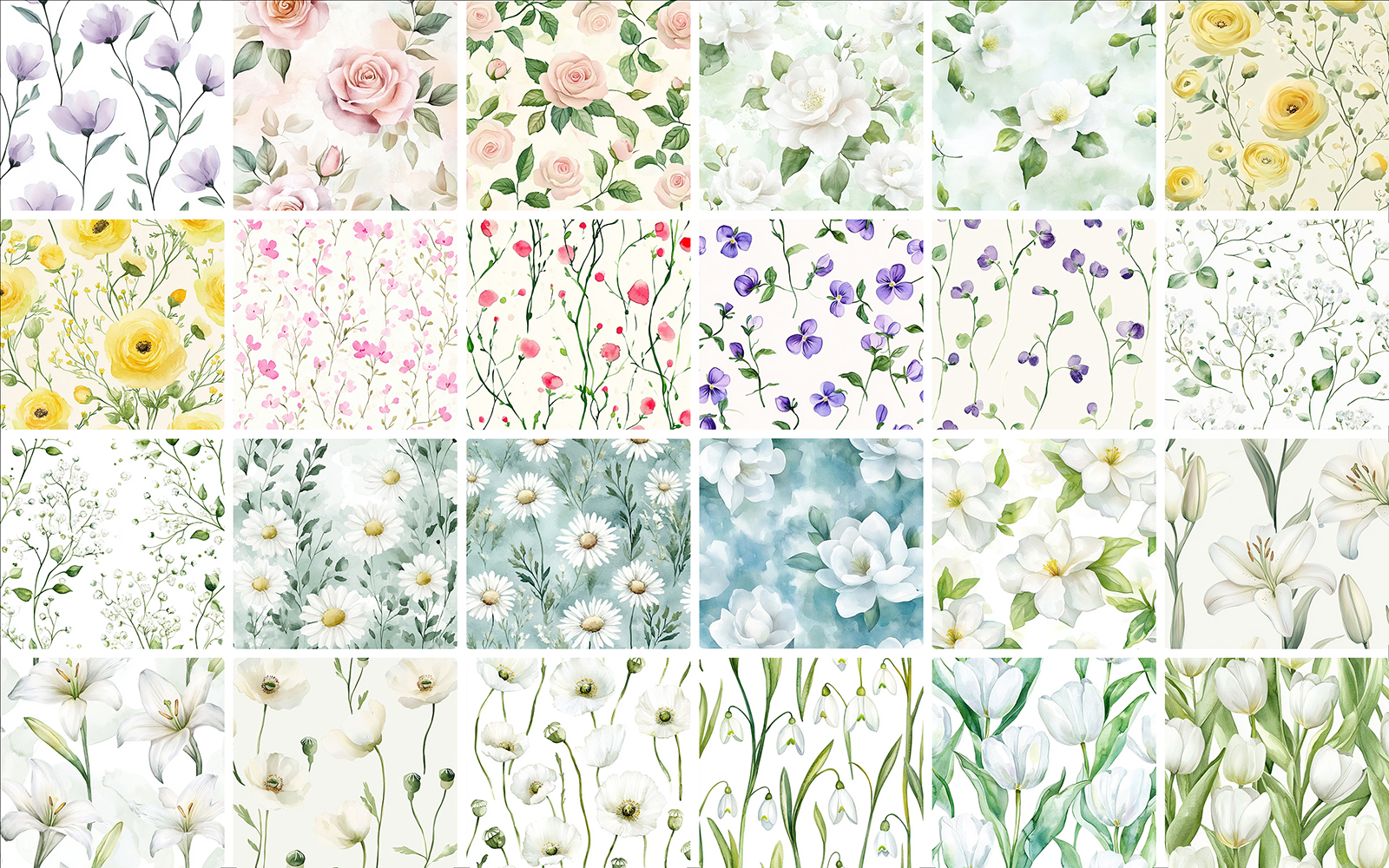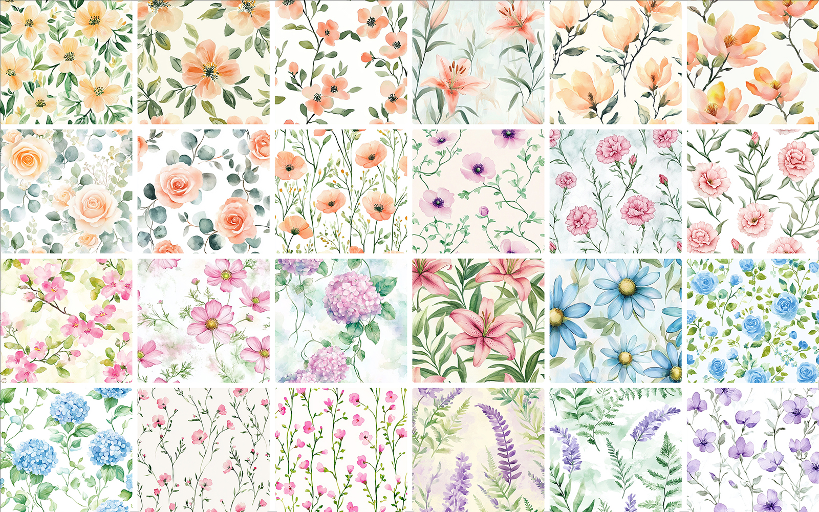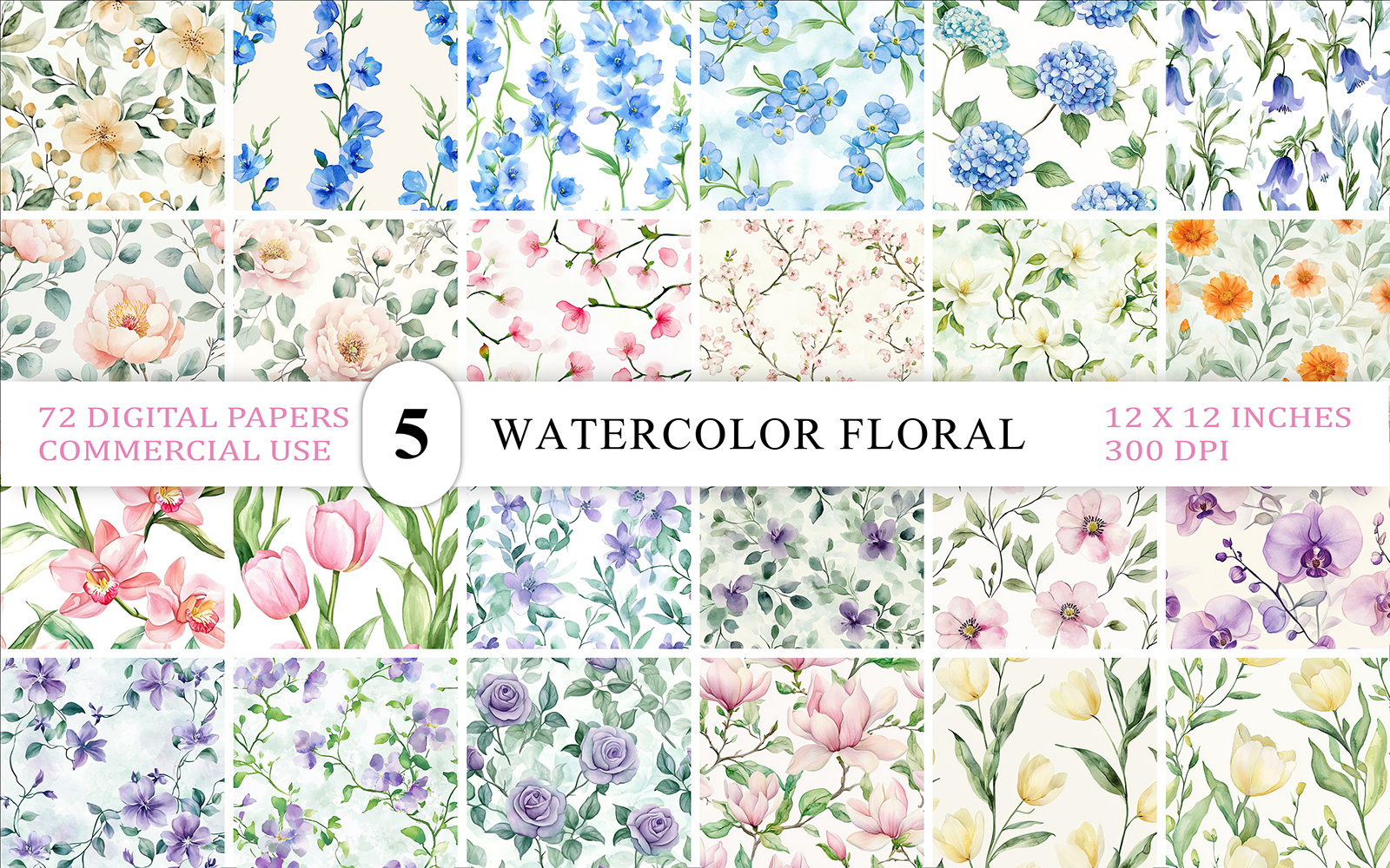 ✔ 72 Unique Seamless Watercolor Floral Digital Paper Backgrounds