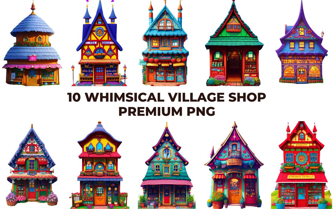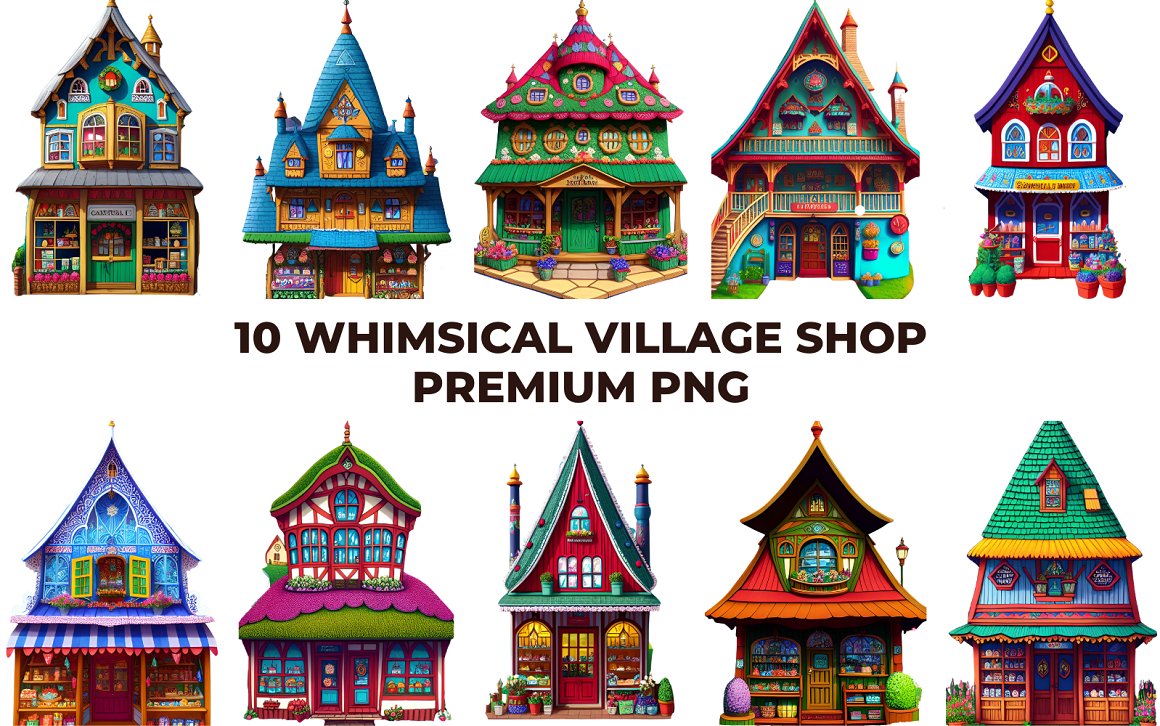 Whimsical Village Shop PNG Clipart is a collection of digital graphics that depict a charming and whimsical village shop. The clipart includes various elements such as the storefront, roof, windows, door, chimney, and other decorative details. The graphics are saved in PNG format, which means they have a transparent background and can easily be incorporated into different design projects. These clipart graphics are ideal for creating greeting cards, invitations, posters, and other creative projects that require a touch of whimsy and charm.