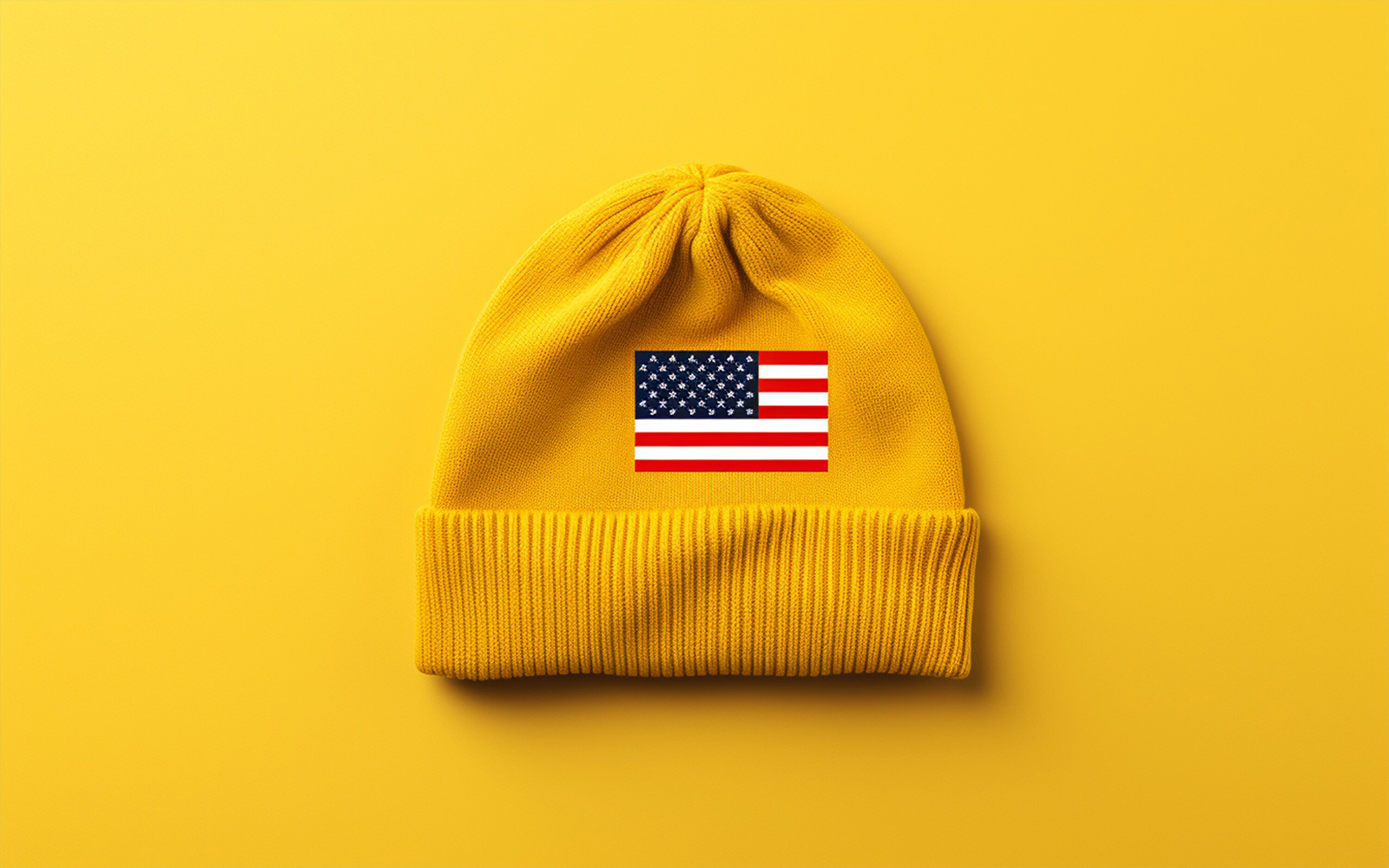 Yellow american crochet beanie, Usa crochet beanie, blank american beanie mockup