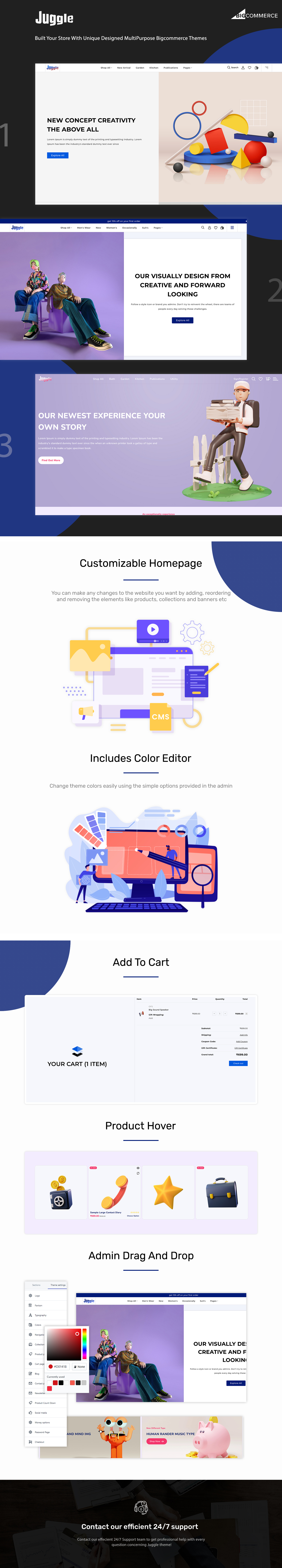 The "Juggle" Stencil BigCommerce Theme is a versatile and modern eCommerce theme designed to meet the needs of businesses across diverse industries. Built on the robust BigCommerce Stencil framework, Juggle offers a seamless and user-friendly shopping experience with unmatched performance and design flexibility. Whether you're selling fashion, electronics, home goods, or niche products, Juggle's sleek and responsive design ensures your store stands out.
