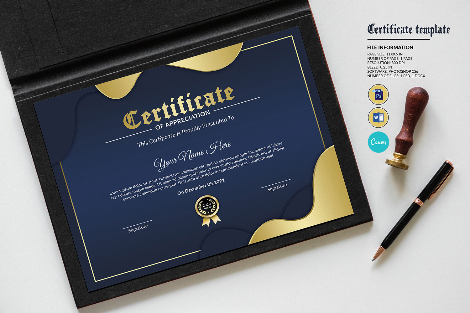 Corporate & Modern Certificate Template. Use this Certificate Template in your business, company or institution in completion of any course, training ,degree or job.