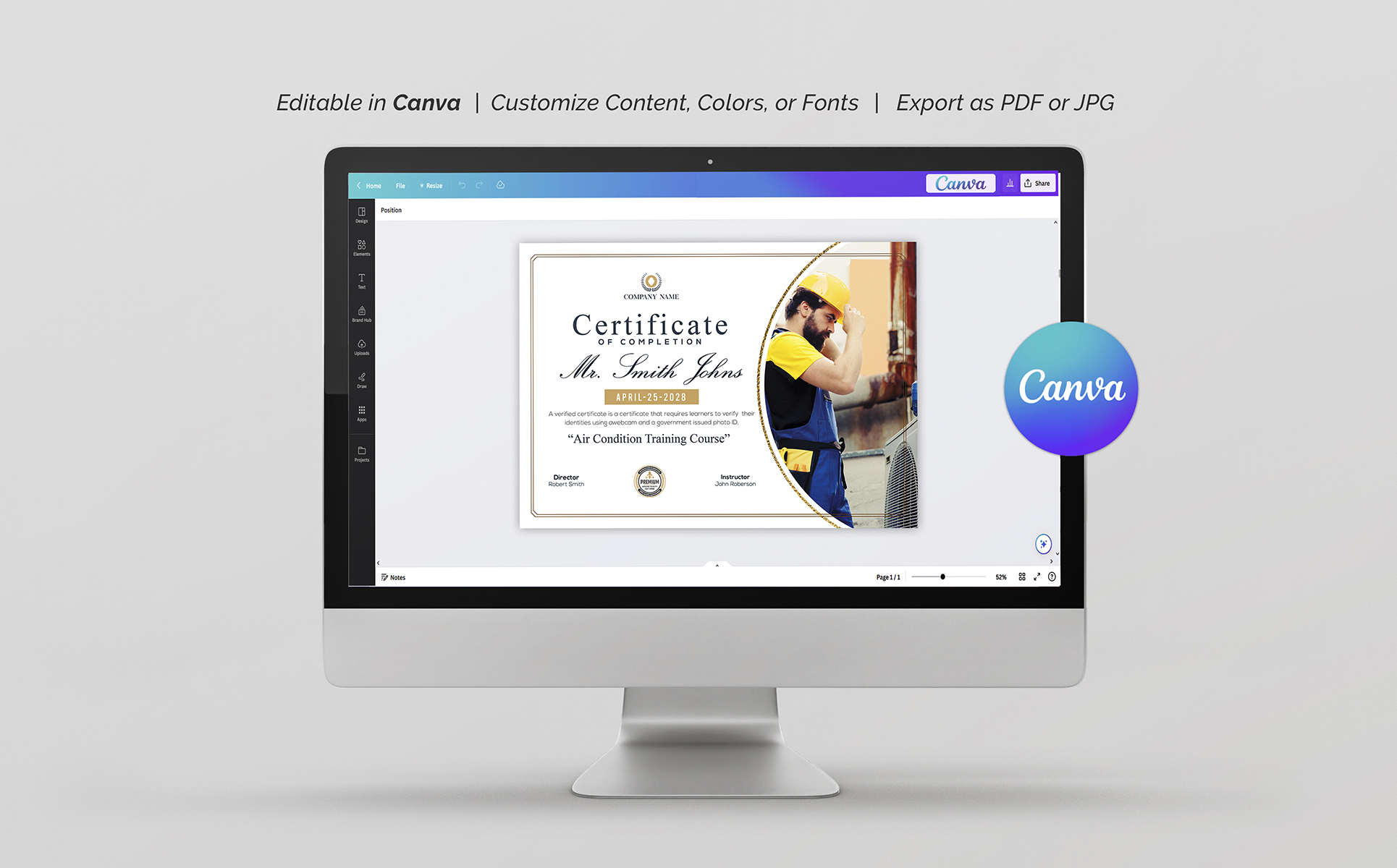 Canva Air Condition Course Certificate Certificate Template