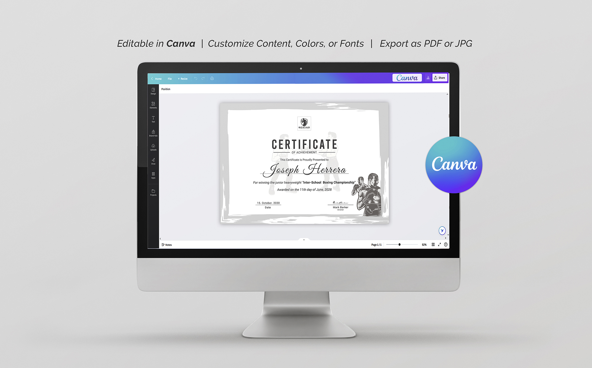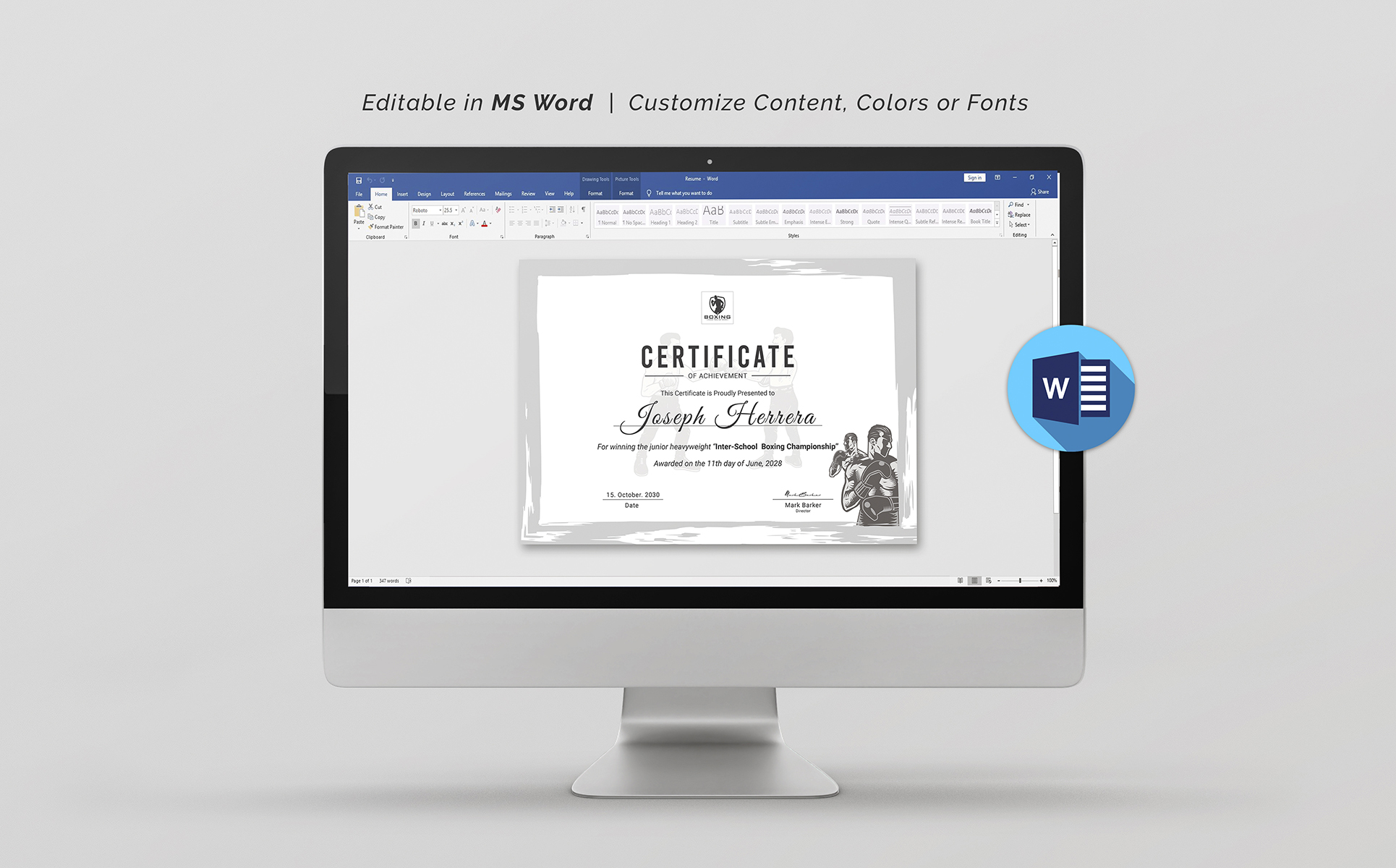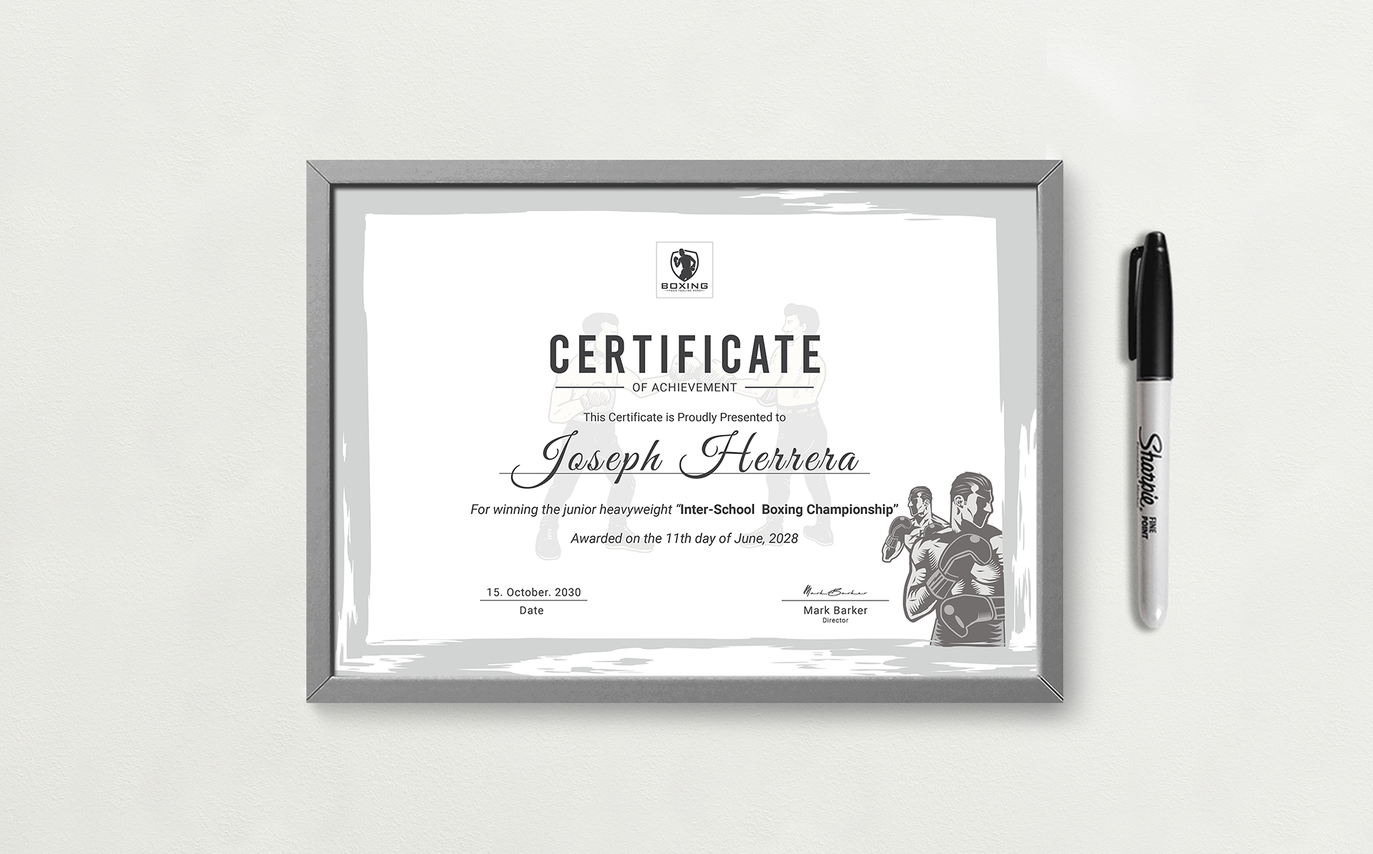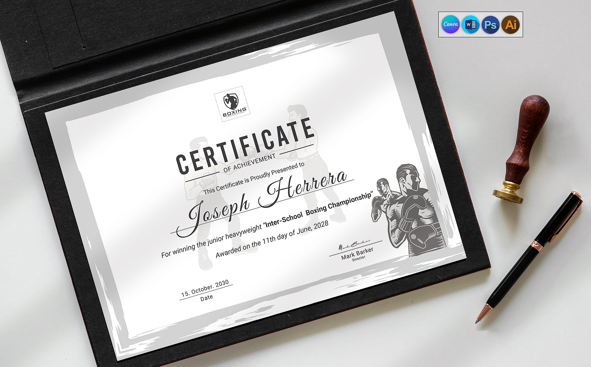 Certificate Template Word Printable Boxing Certificate Certificate Clean Certificates Simple Design Editable MS Word Certificate of Boxing Certificate.