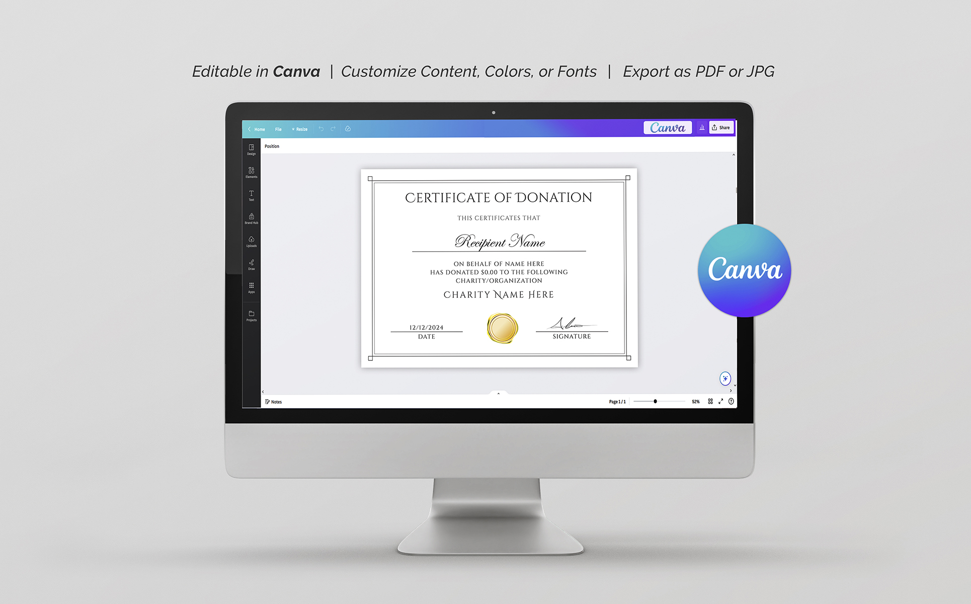 Canva Certificate of Donation Certificate Template
