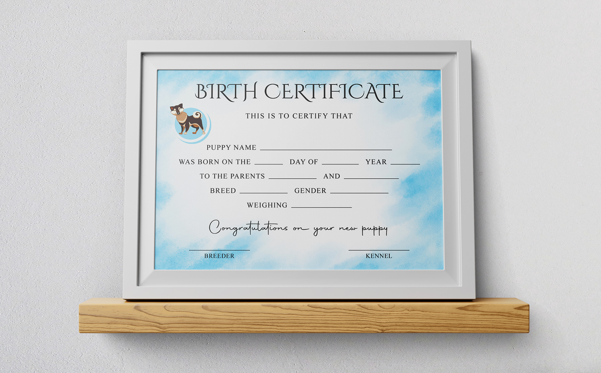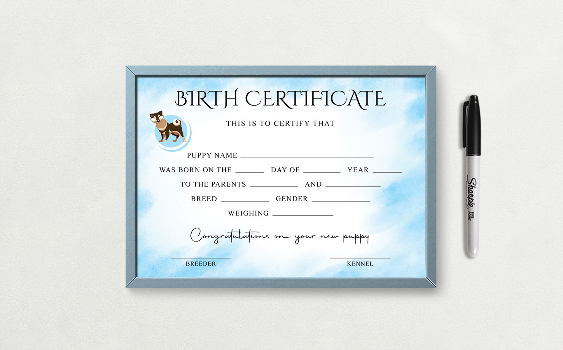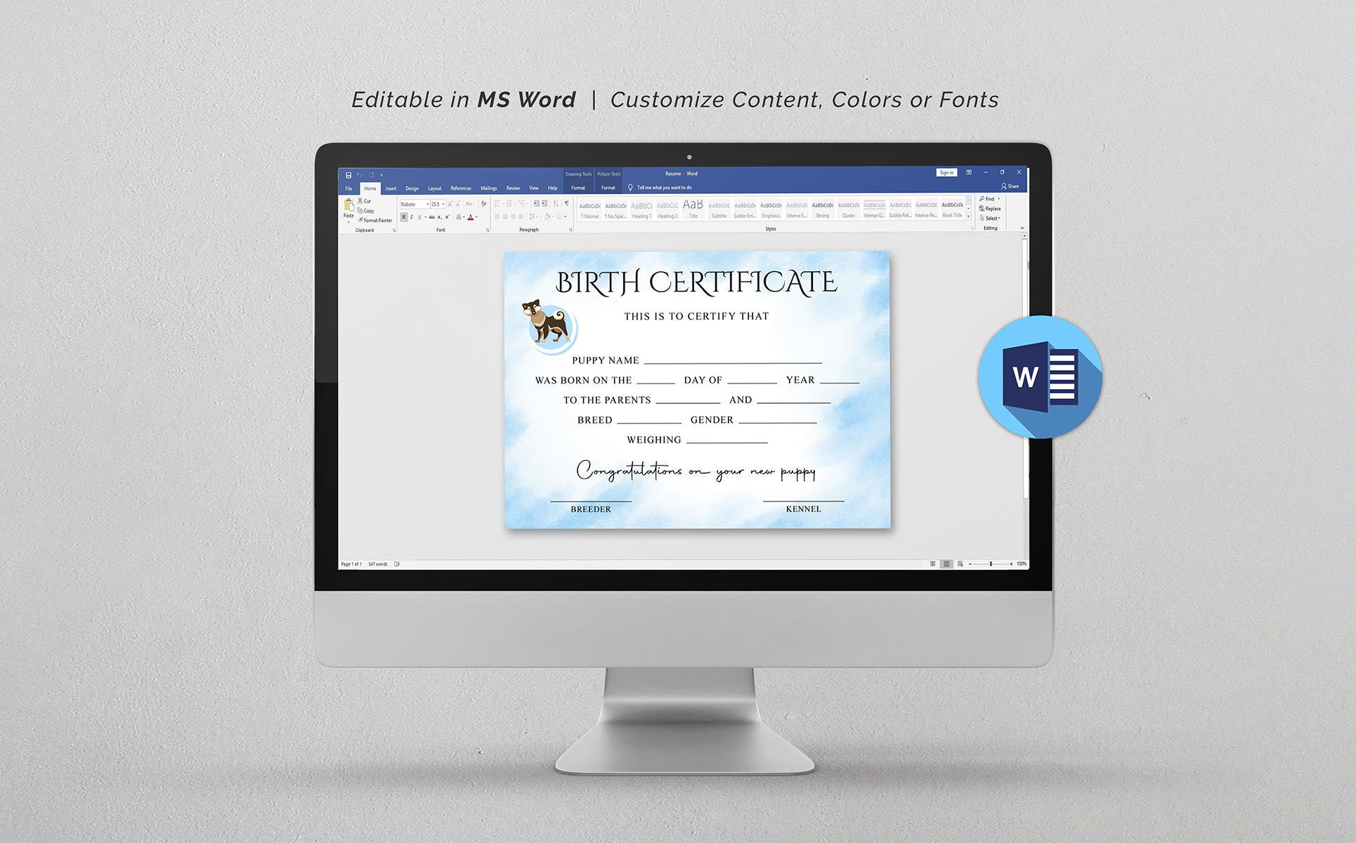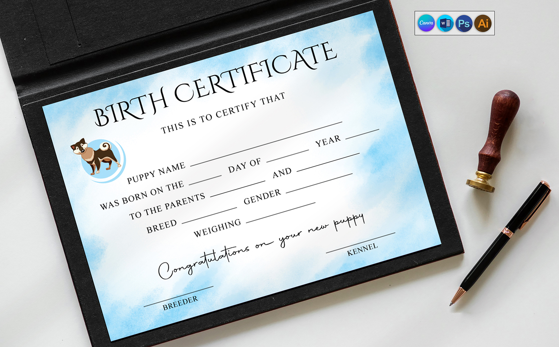 Certificate Template Word Printable Puppy Birth Certificate Clean Certificates Simple Design Editable MS Word Certificate of Puppy Birth.