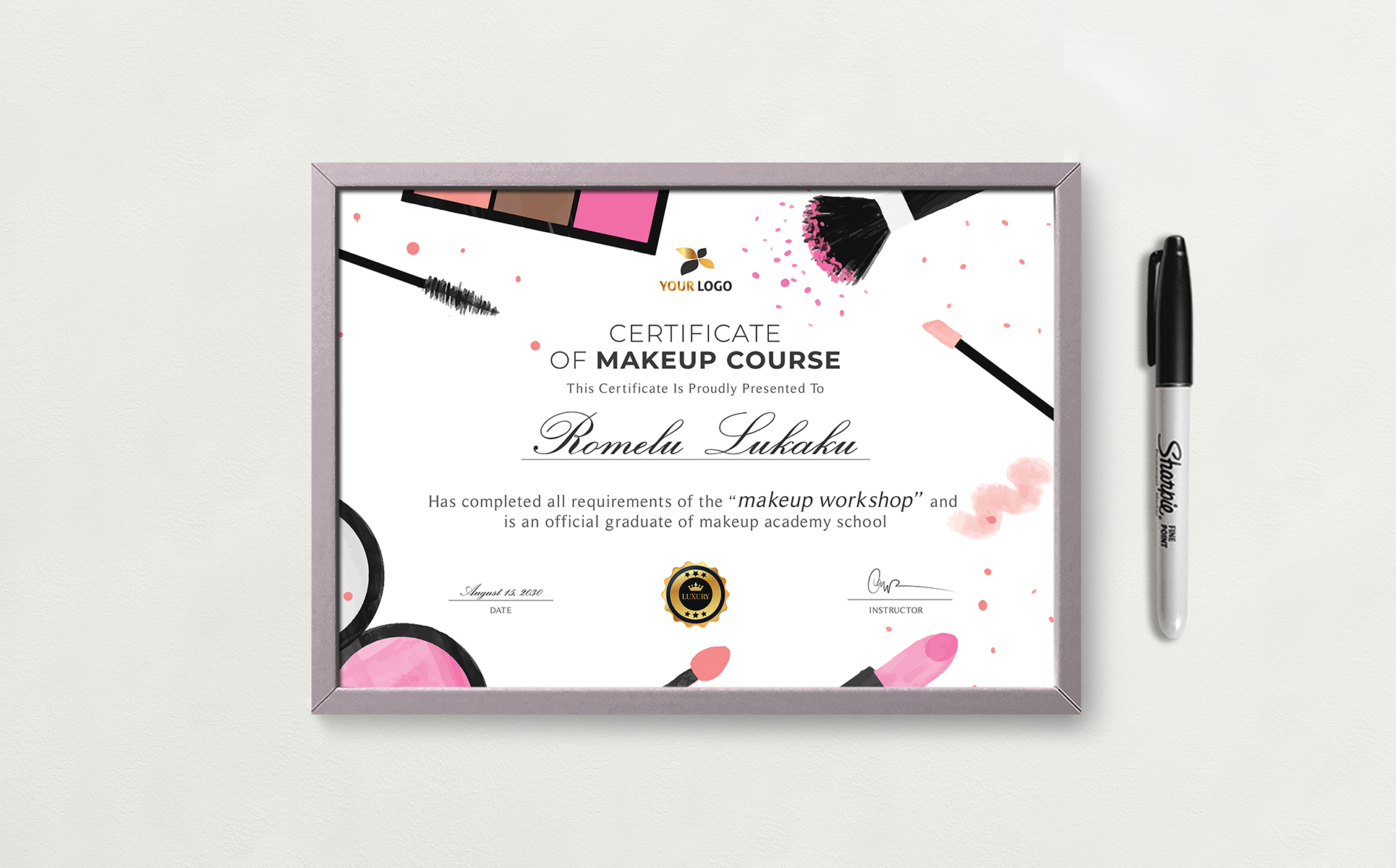 Canva & Word Makeup Course Certificate Template Design