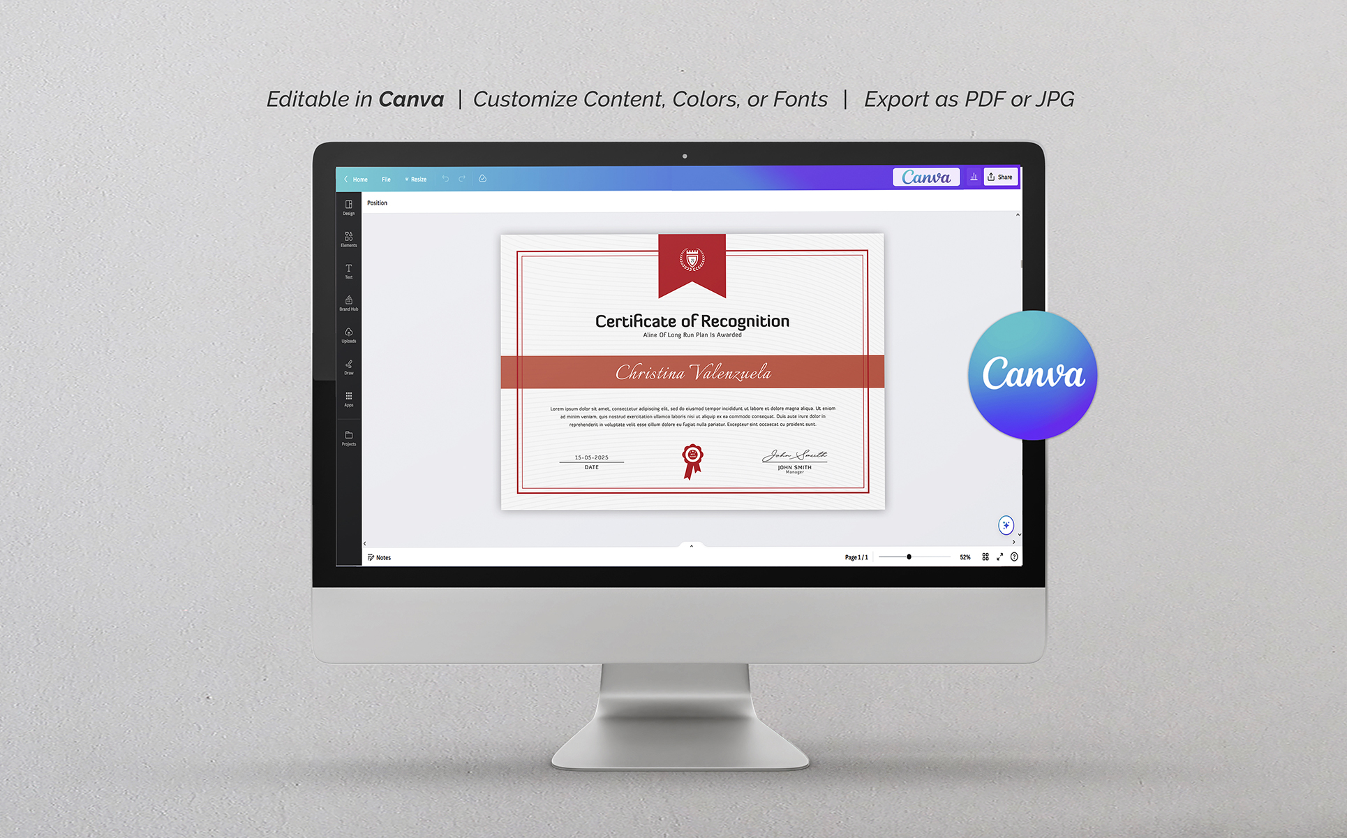 Fully editable and easy to customize, this certificate template works seamlessly across Canva, Microsoft Word, Adobe Photoshop, and Illustrator. Whether you need to adjust names, logos, colors, or fonts, you can create a polished and personalized certificate in minutes.