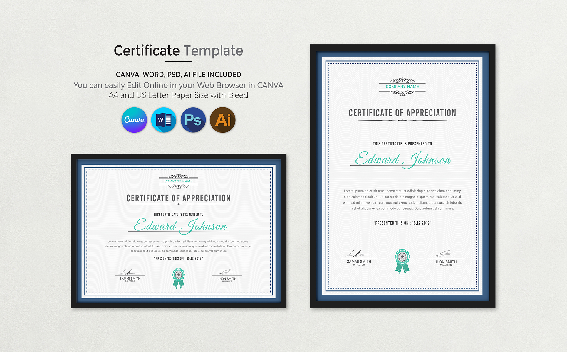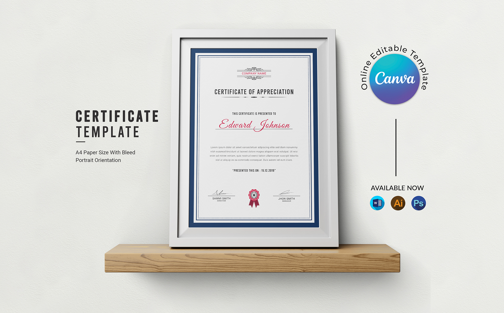 Canva Certificate of Appreciation Template available in A4 and US letter size Certificate Template