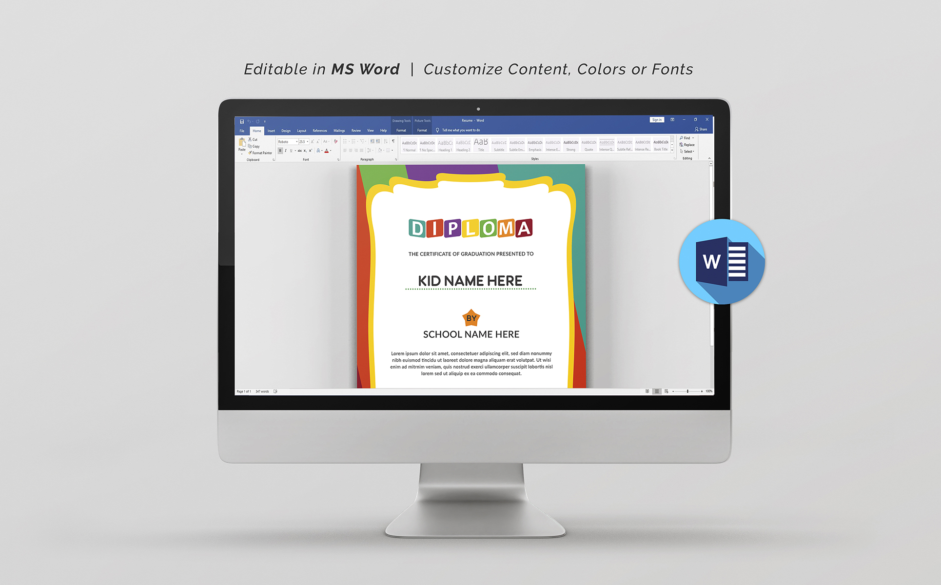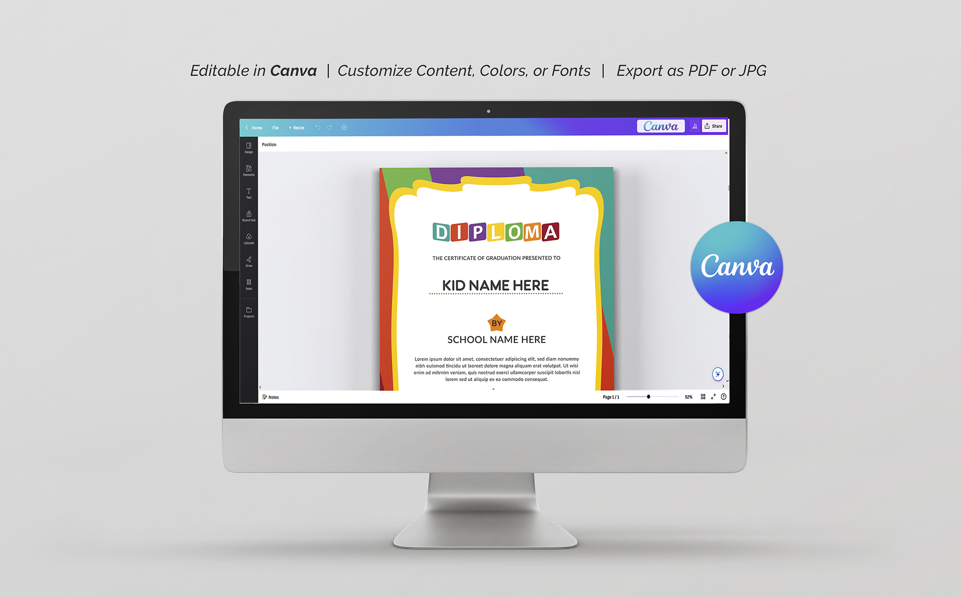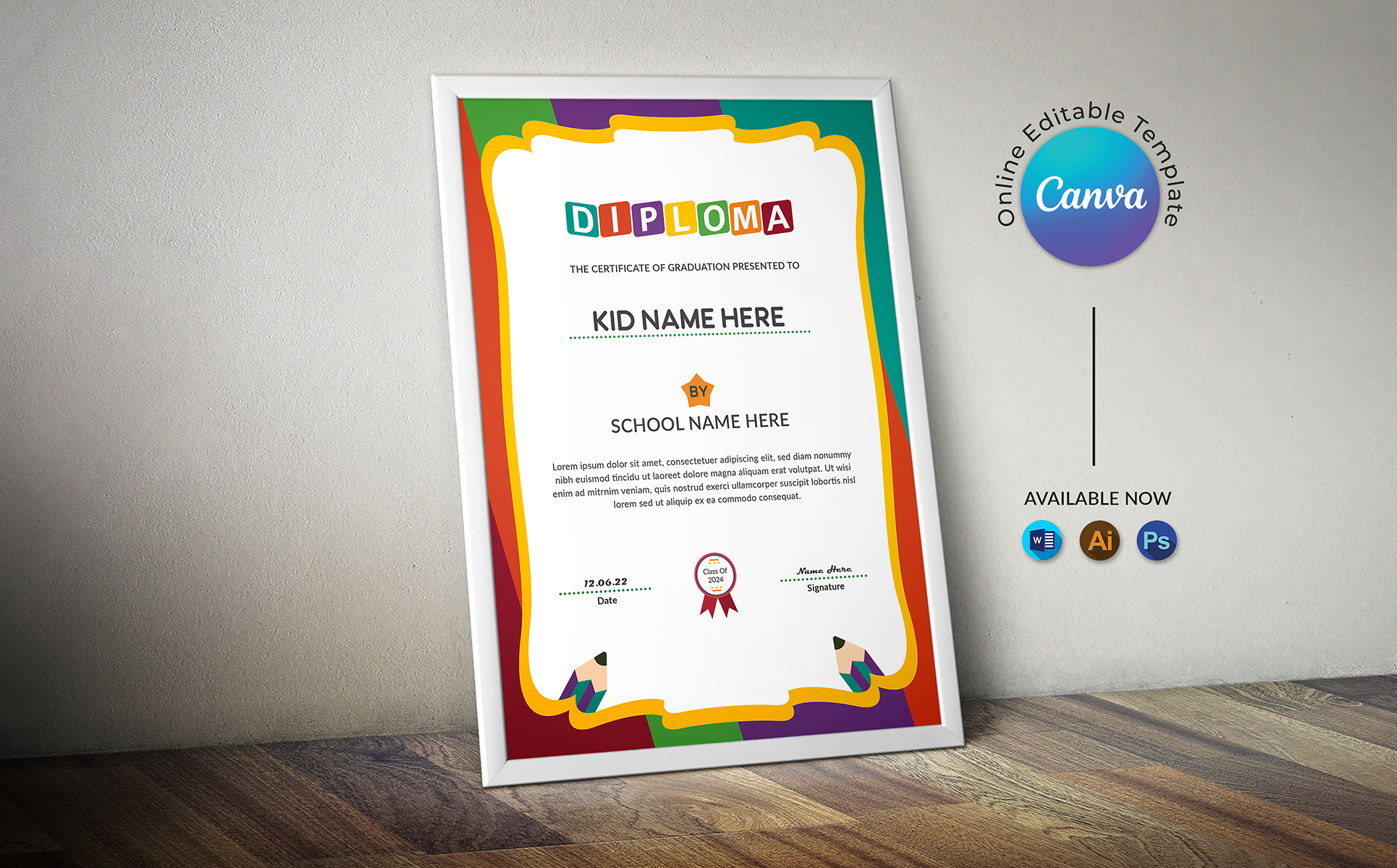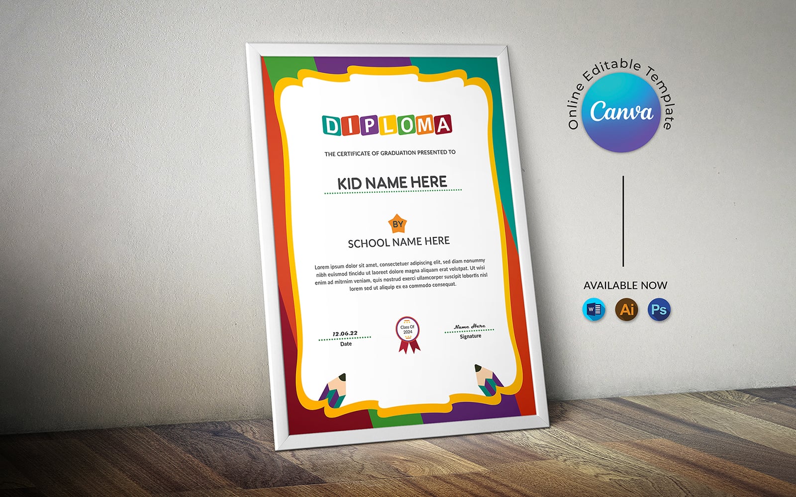 Editable Kids Graduation Certificate Template Canva and MS Word