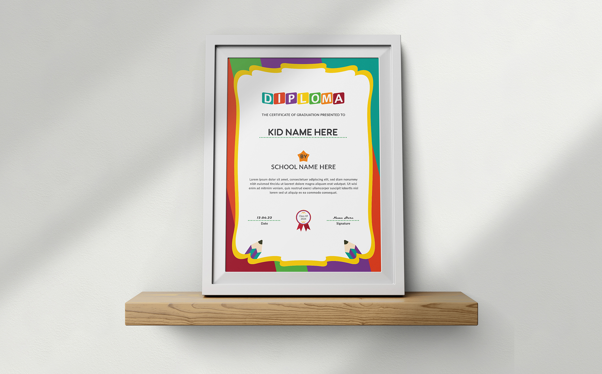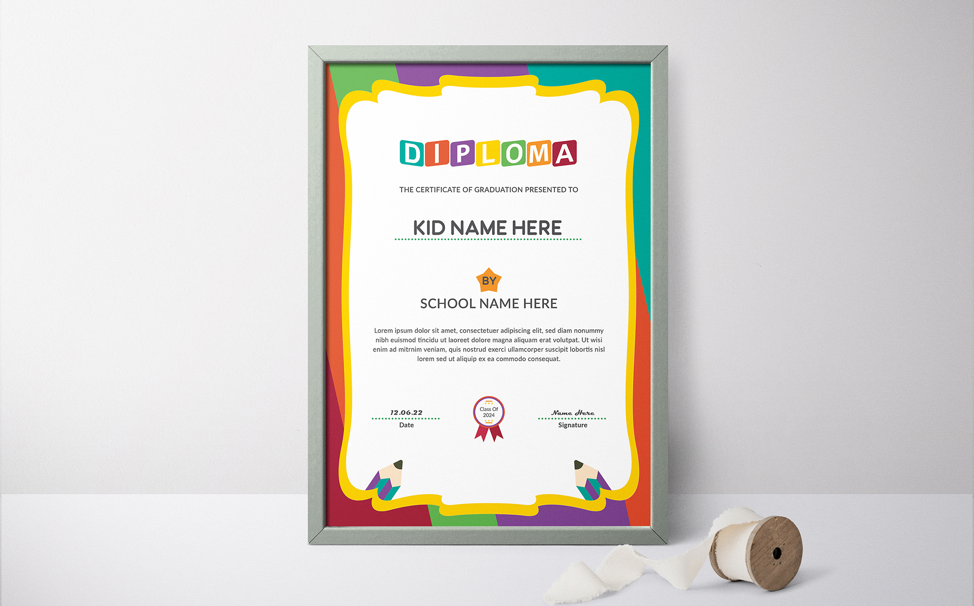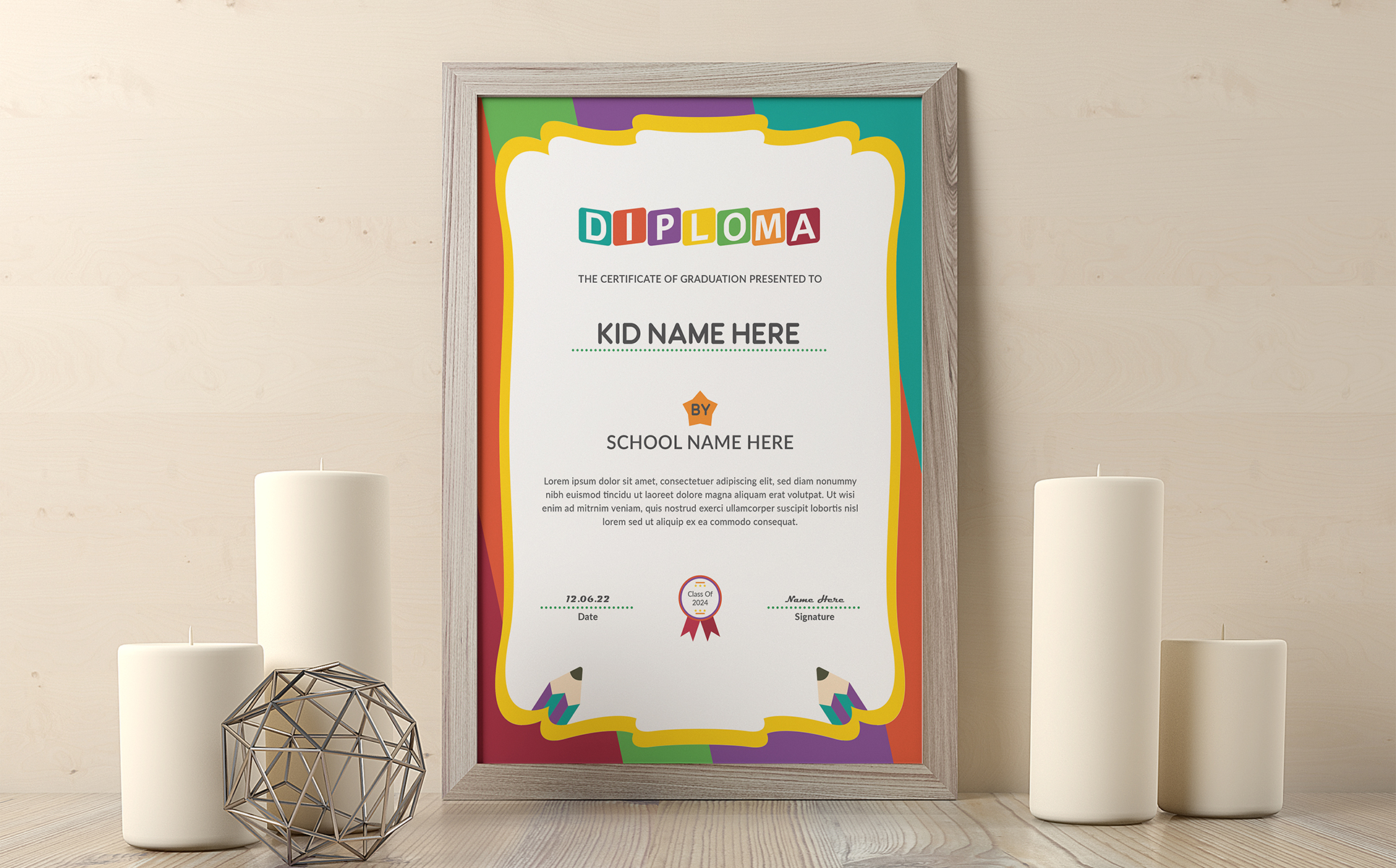 Celebrate your little graduate’s big achievement with this colorful and fun Editable Kids Graduation Diploma Certificate! Perfect for preschool, kindergarten, and elementary school graduations, this printable award adds a special touch to their milestone moment. With a bright, playful design featuring rainbow colors, cute pencils, and bold “DIPLOMA” lettering, this template is ideal for teachers, parents, and schools looking to create personalized graduation certificates in minutes. Simply edit the child’s name, school name, and date, print, and present!