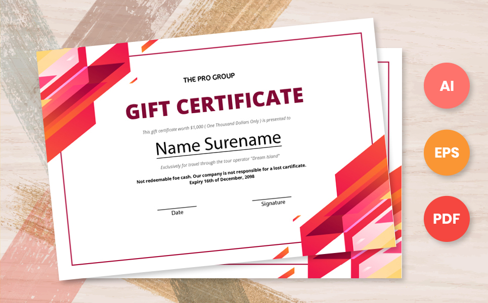 And this particular Gift Certificate template is eye-catchy. And most importantly it is bright. After all, people like bright gifts. Just edit it to add information about you and your client and you are good to go!