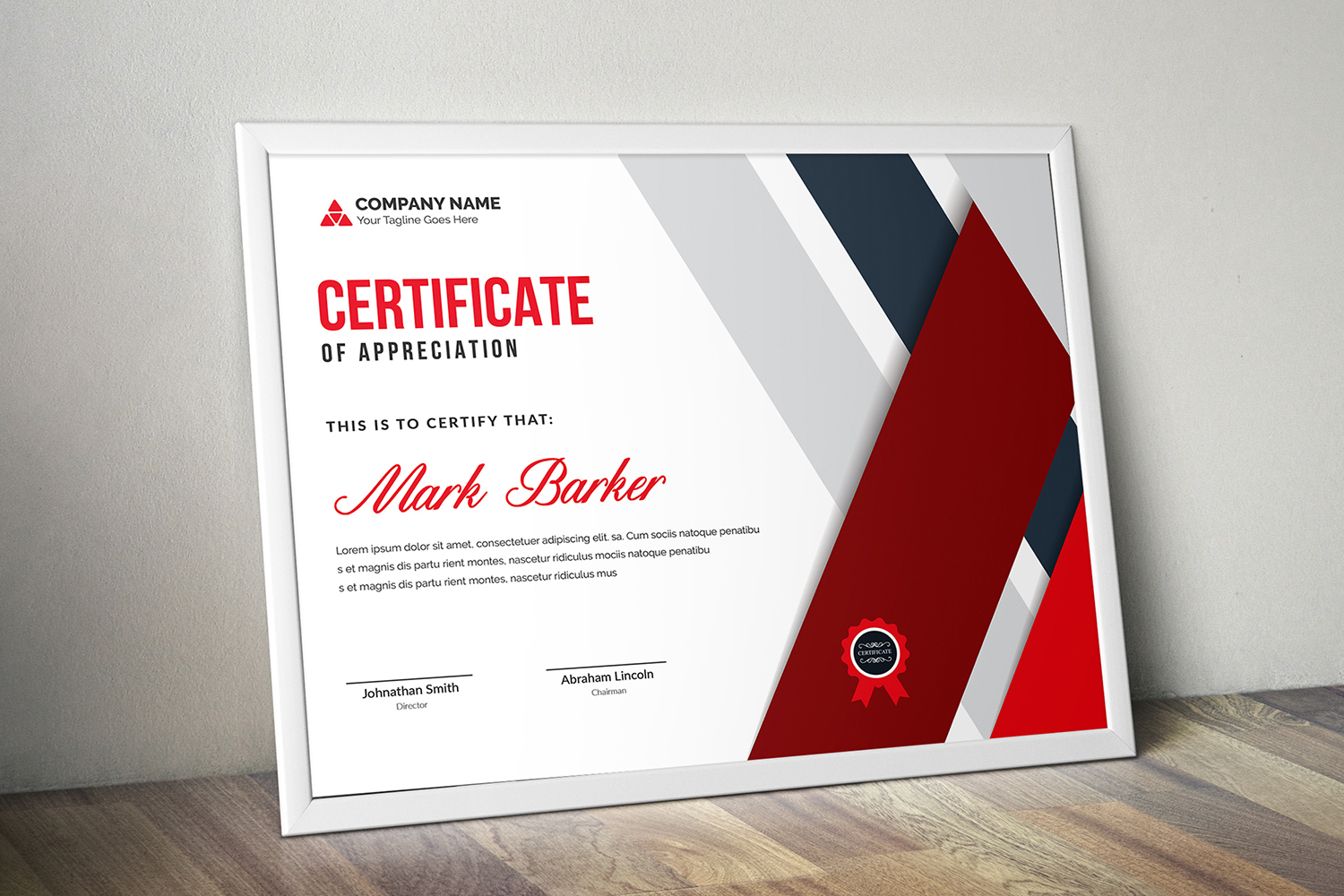 Multipurpose modern Certificate Template with clean, modern design, suitable for event awards, employee of the month awards, awards of recognition, appreciation, achievements, completions of courses etc.