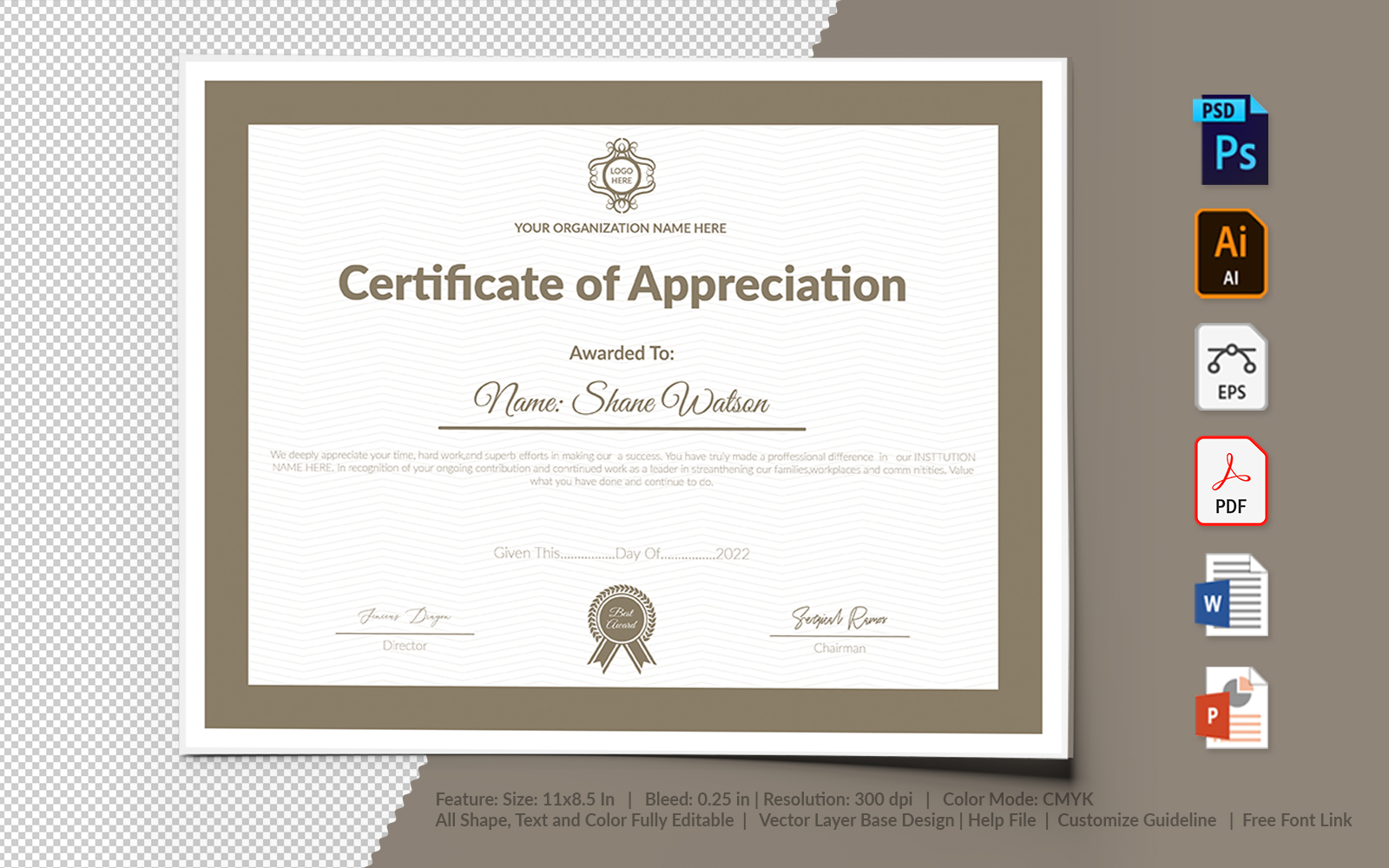 - Files included: Adobe Photoshop cc (PSD), Adobe Illustrator cc (AI) (EPS), MS Word (DOCX) (PDF), PowerPoint (PPTX).